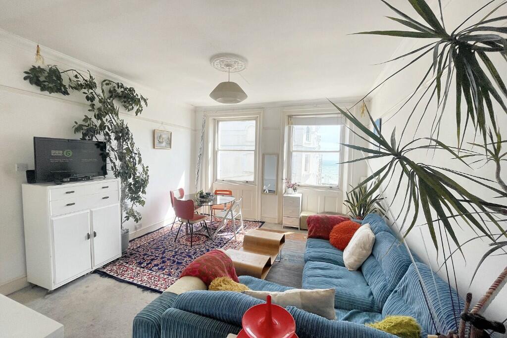 This two bedroom period apartment with uninterrupted views of the sea is situated in very popular area of Kemp Town. The property does the require some updating but it retains some period features and is offered for sale with no onward chain and a share in the freehold.