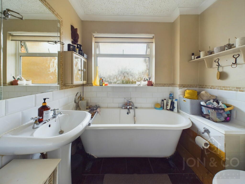 This three-bedroom mid-terraced house situated on Obelisk Rise in Kingsthorpe, Northampton, presents a mixed picture. Its location offers a relatively convenient position near several schools rated ‘Good’ by Ofsted, and the proximity to Northampton town centre gives access to a wider range of amenities and transport links. However, the property’s condition shows it would benefit from modernisation and cosmetic updates. The kitchen and bathroom appear dated and would likely require significant work. The decor overall feels outdated. The small garden provides some outdoor space, but is relatively basic and could be improved. In summary, whilst the location and price per square foot are attractive to buyers, potential purchasers should factor in the cost of updating and modernising the property when making their offer.