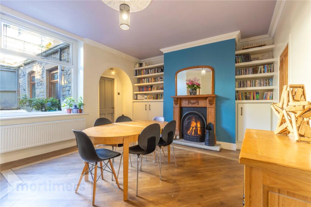 This is a four-bedroom terraced property located on Queen Street, Padiham, Burnley. The property is in good condition, with a modern kitchen and bathrooms. It also benefits from a garden with a decked area. The property is located close to local schools and transport links. The listing price is £259,950.