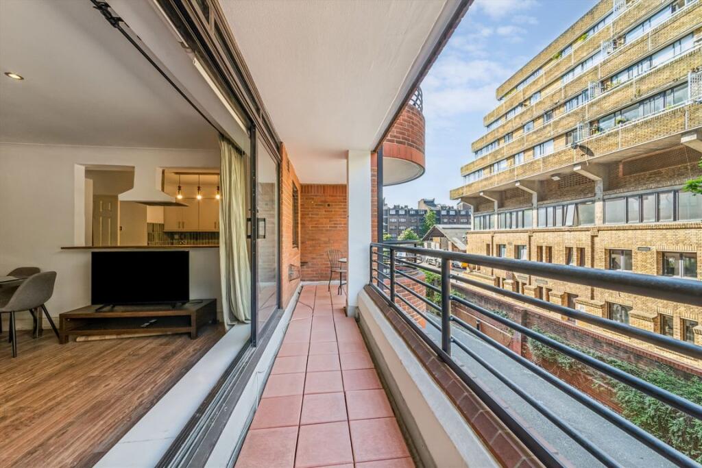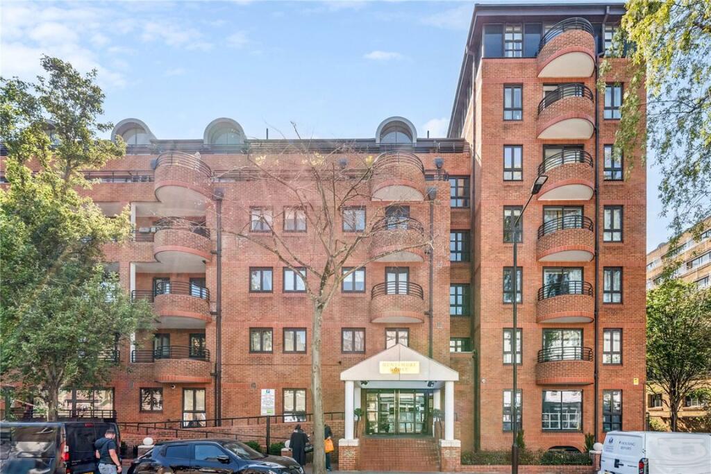 This first floor apartment in Kensington features two bedrooms, a reception room with balcony access, and secure parking. The building offers a pool, gym, lift and 24 hour concierge.