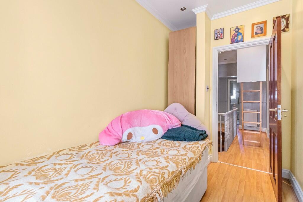 This three-bedroom, one-bathroom house located on Ladbroke Road in Bush Hill Park, Enfield, is listed at £675,000. The property is conveniently situated near Bush Hill Park Overground station, offering easy access to public transport. Nearby schools, including a primary school with a ‘Good’ Ofsted rating, are also advantageous for families. The house features three reception rooms, a kitchen, and a lean-to conservatory. The images reveal a property that is currently habitable, however, some rooms could benefit from modernisation or redecoration to enhance their appeal and functionality. The kitchen and bathroom, while functional, appear dated. The external space consists of a paved rear garden that provides a relatively small outdoor area. Overall, the property presents a reasonable option for buyers seeking a family home in a convenient location, although potential buyers should factor in costs for future modernisation and improvements. The absence of plot size information and inconsistent information for neighbouring properties makes a complete assessment challenging.