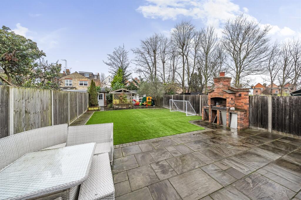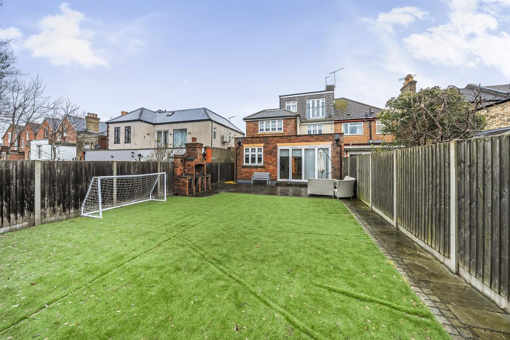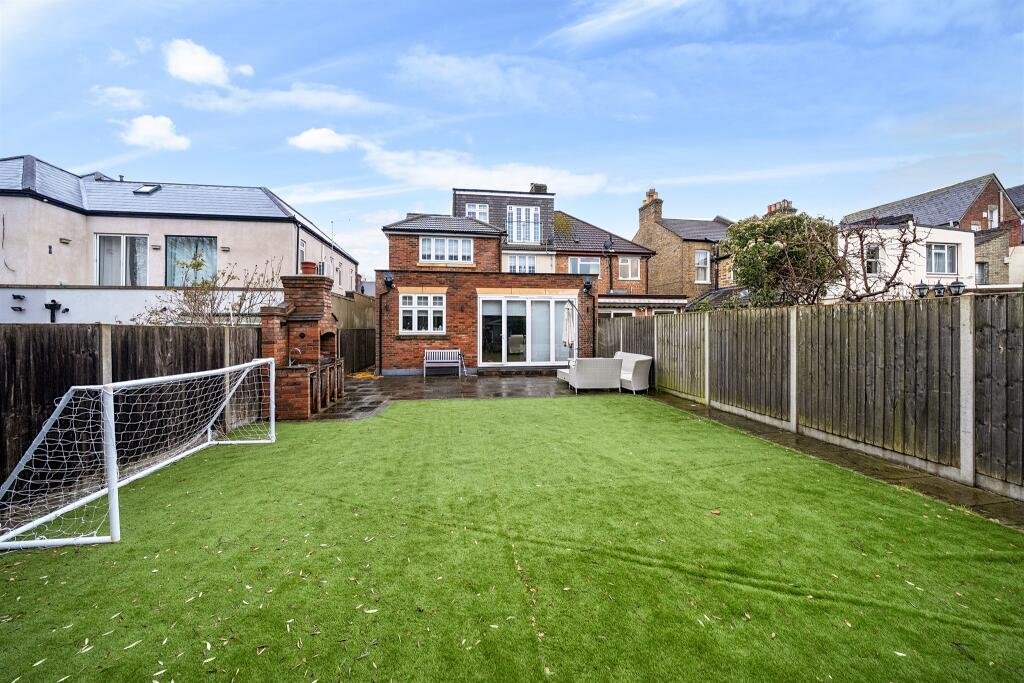 The property appears to be in excellent condition, having undergone a recent modernisation. The kitchen and bathrooms are modern and well-maintained, and the interior is presented to a high standard. There is a good-sized garden with artificial turf, a patio area, and a built-in brick barbecue. The property benefits from a large rear garden.