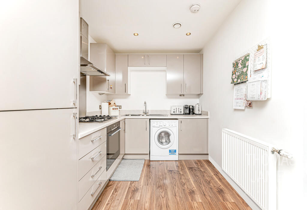 This purpose built one bedroom on the fourth floor of a modern development in New Southgate has its own balcony with far-reaching views across the rooftops of north London. Immaculately presented and conveniently located, this contemporary apartment is unusually spacious and light.