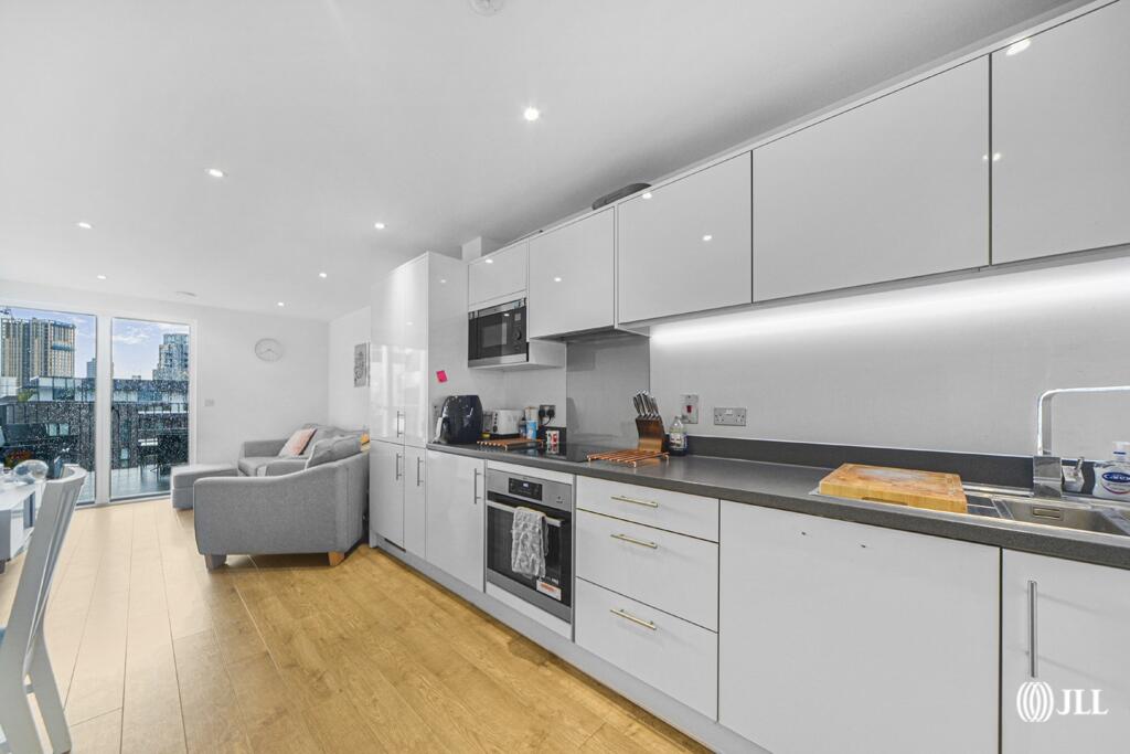 Contemporary 2-bedroom apartment with south-facing balcony in prestigious Legacy Wharf. Ultra-modern interiors, concierge service, residents' gym and communal gardens. Moments from Stratford's transport hub, Westfield and Olympic Park.