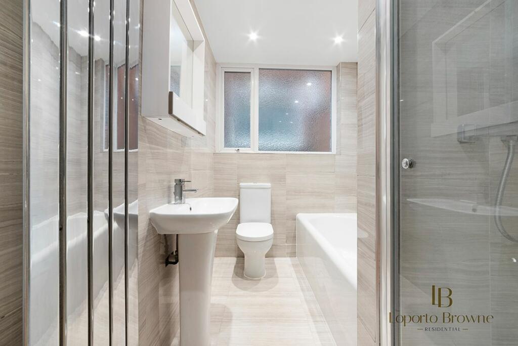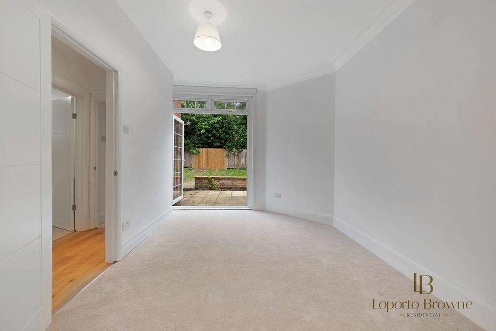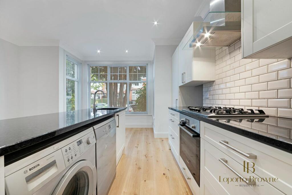 Step into the ground-floor flat where an open-plan kitchen and reception area greet you with warmth. Here, wooden floors meet stylish cabinetry in a calming, neutral palette, and the kitchen is fitted with modern appliances. A large bay window invites an abundance of natural light, while a lea...