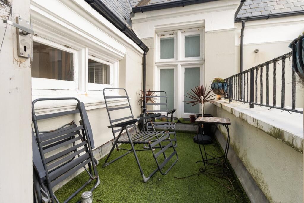 This is a 3-bedroom apartment in a period building in Brighton. The property is in a desirable location, close to the seafront, but the immediate area can be busy. The apartment is in generally good condition, but some areas could benefit from updating. The property has access to communal gardens and a small private balcony. The list price seems reasonable, but it is difficult to determine whether it is truly competitive without knowing the square footage.
