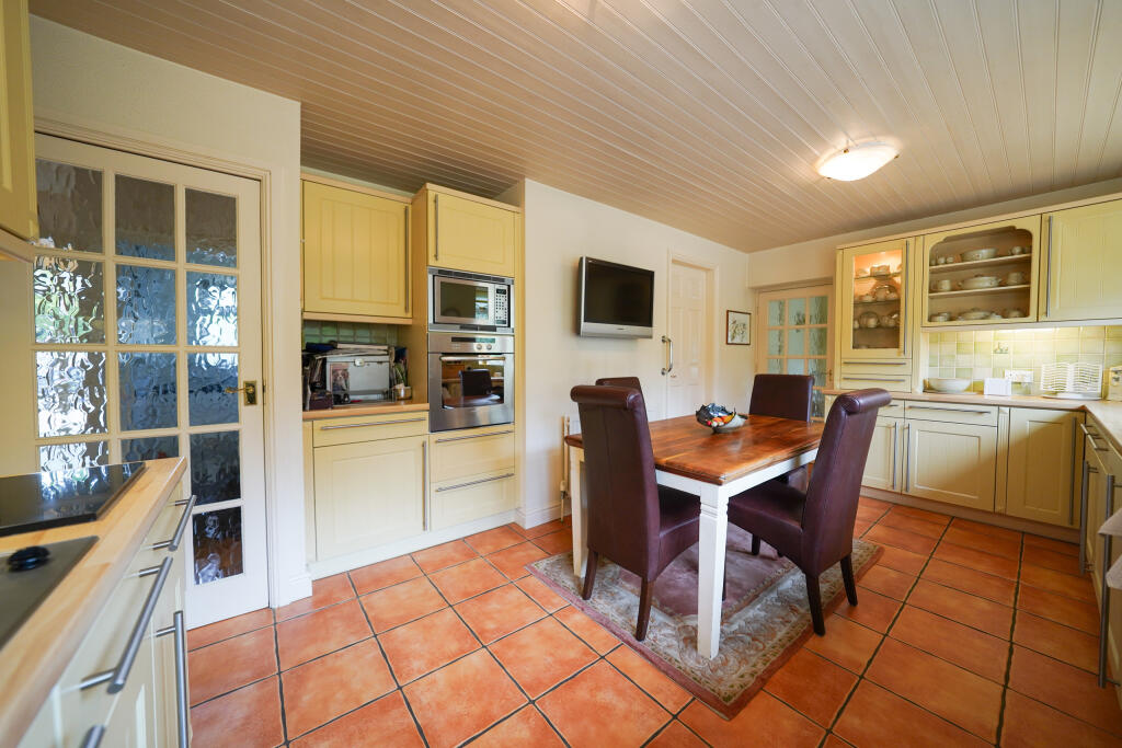 This three-bedroom detached property in Glenfield, Leicester, is situated on Fairefield Crescent, an area noted for its desirability. The property’s interior features a consistent style throughout, with traditional furnishings and a color scheme that creates a welcoming atmosphere. The rooms appear spacious, particularly the living room and dining room, which benefit from natural light and charming features, such as chandeliers. The kitchen is well-equipped and has a bright and airy feel. The property boasts two bathrooms, both with modern fixtures. The bedrooms are located in the loft and appear reasonably sized, with built-in storage solutions in place. This feature adds to the practicality of the house, making it suitable for a family. Externally, the property enjoys a large, mature garden, a generous driveway, and a red detached garage, providing ample parking and storage. The property presents a comfortable and livable space. However, some elements of the décor may appear dated to modern tastes. Whilst there are no apparent significant issues with the property, some updates and modernisations may be considered by prospective buyers based on their preferences and priorities.
