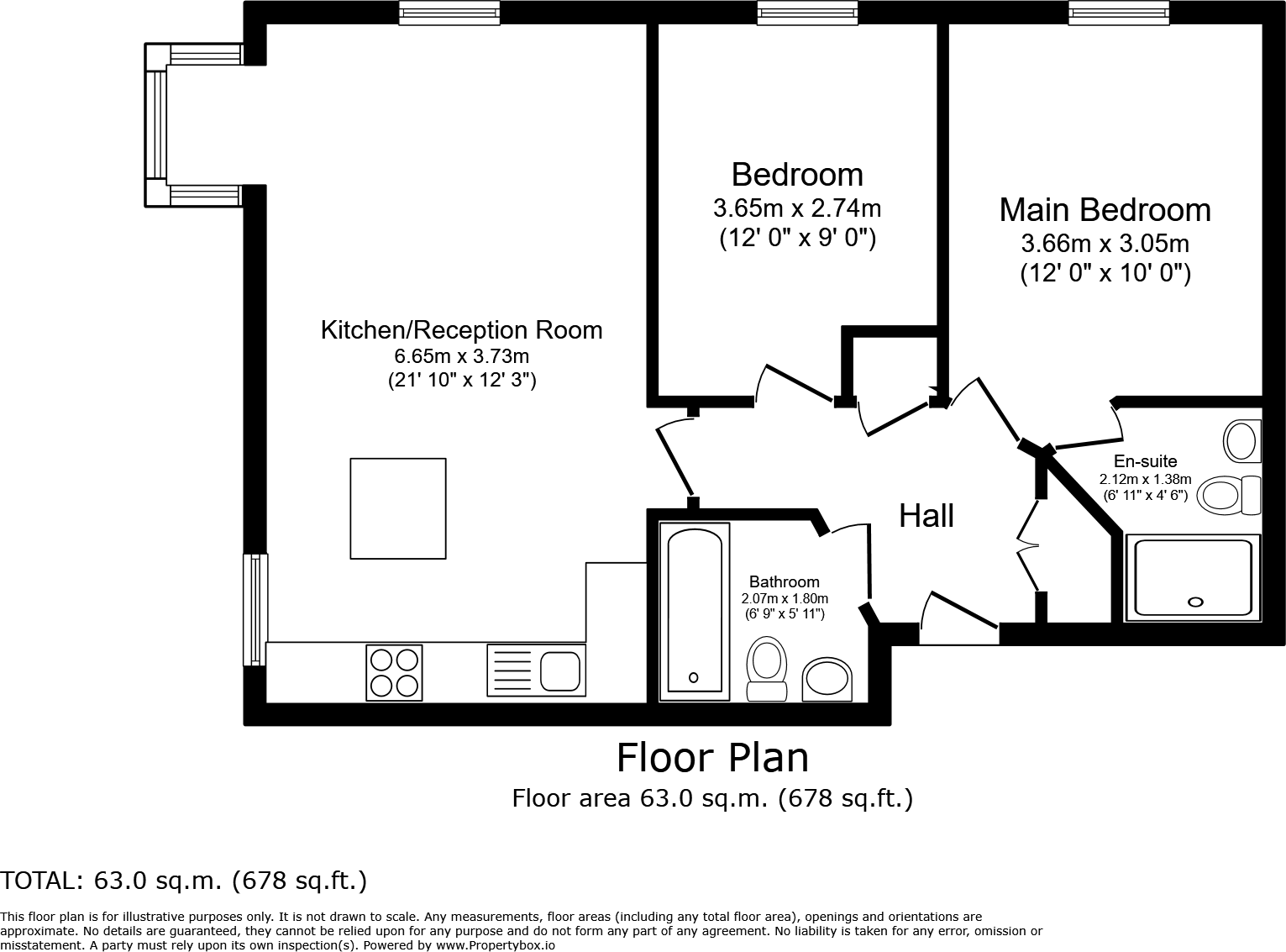 The property consists of an open plan living room and kitchen which is triple aspect. Bedroom accommodation is well-balanced with two double bedrooms and the master suite having the added benefit of an ensuite shower room with walk-in shower. A further guest bathroom is across the hallway. E...