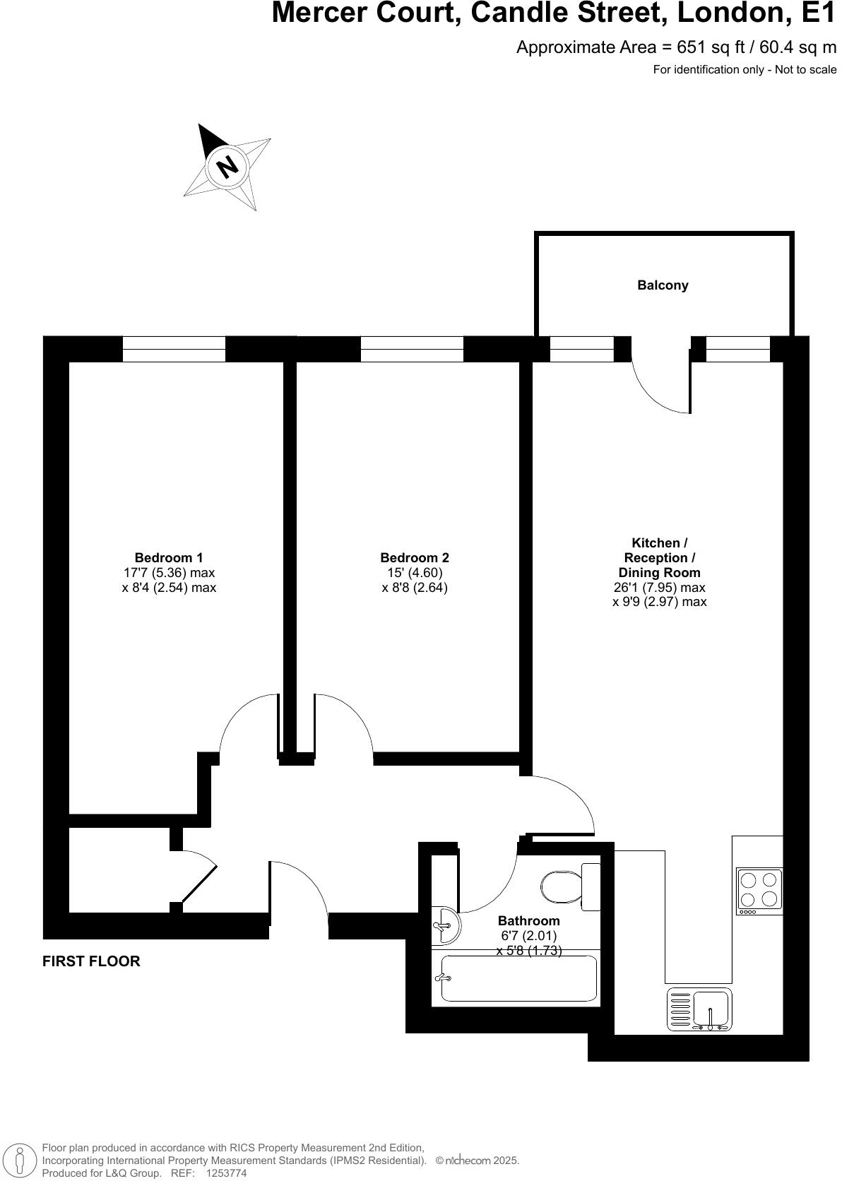 This 2-bedroom flat is located in Mercer Court, Candle Street, London, E1 4SF. The property benefits from a small balcony and is within reasonable proximity to several public transportation options, including Limehouse station (c2c) at 0.70 KM, and several other stations within a 2.5 KM radius. There are also several well-regarded schools nearby, including Halley Primary School (Good Ofsted rating) and Ben Jonson Primary School (Good Ofsted rating), both within a 0.3 KM radius. The flat itself appears to be in good condition, clean and well maintained based on the provided images. While the images do not show the full extent of the property, the visible areas suggest a modern and functional layout. The property includes a small balcony offering some outdoor space. Compared to the average price per square foot in the area (£674), the list price of £430,000 for 562 sqft seems slightly below average, potentially representing good value for money, although further information on the property’s condition and features would be needed to confirm this. Nearby comparable properties range from £325,000 to £450,000 for flats, suggesting the list price is within the market range for similar properties in the area.