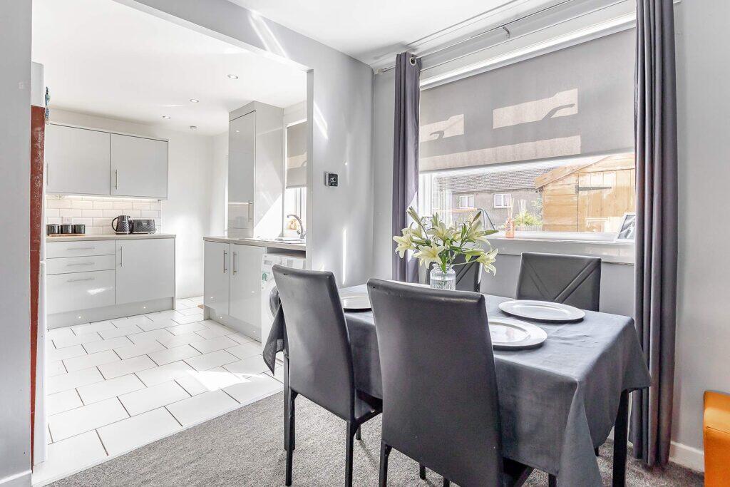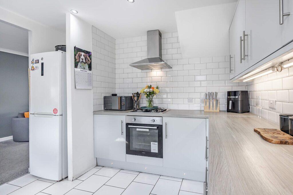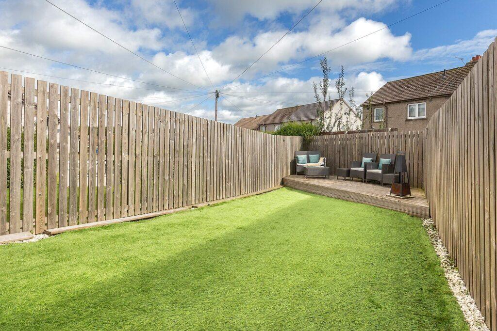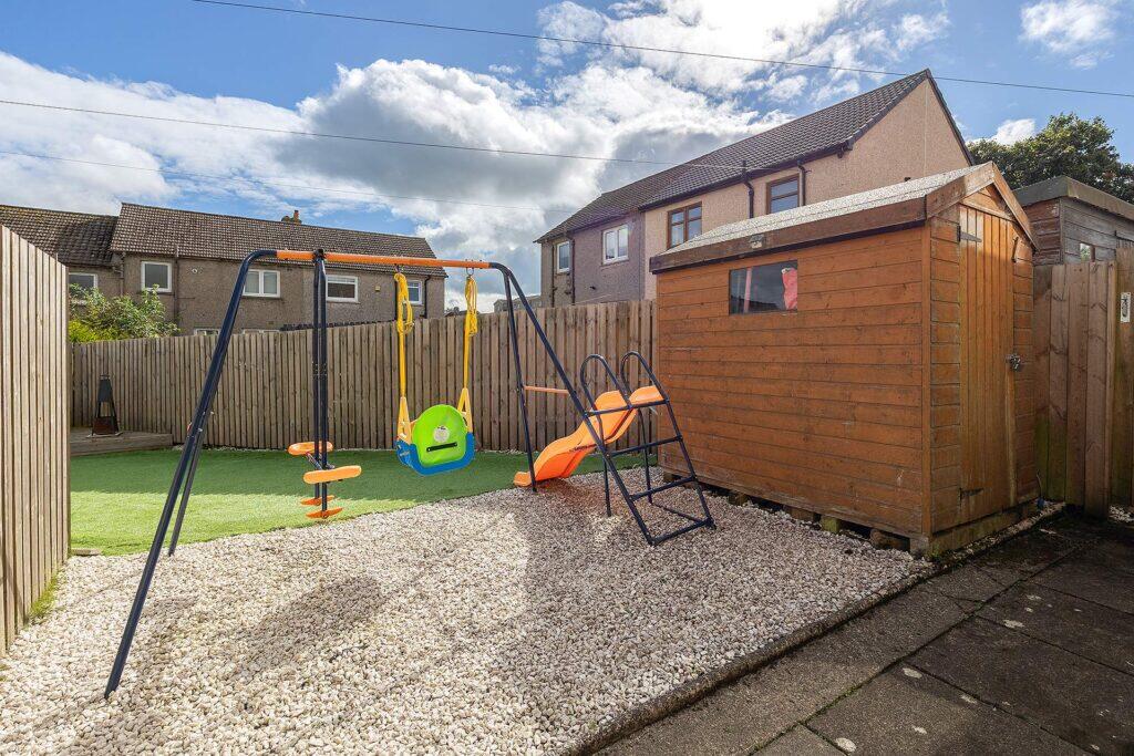This terraced property offers three bedrooms and one bathroom within 627.32 sqft of living space. The property appears to be in good condition, with a modern kitchen and bathroom. The interior is freshly painted and well-maintained. The back garden includes a shed and a play area, providing outdoor space. The property is located in Whitburn, West Lothian, 2.35 KM from Armadale train station. Given the property’s size, condition, and the prices of nearby listings, the list price of £150,000 seems reasonable.