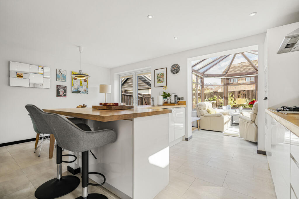 A beautifully extended 4-bedroom detached home with an open-plan kitchen, conservatory, dual-aspect sitting room with log burner, en-suite master, and a landscaped garden, garage, and parking. This property will come end of chain