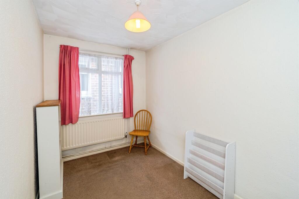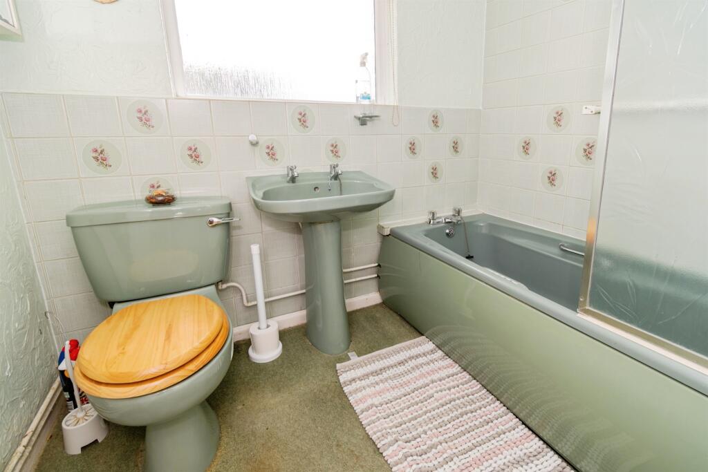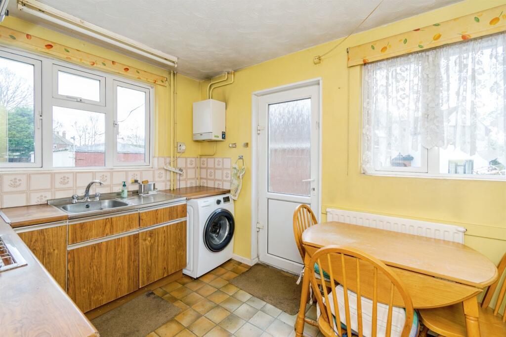 The property appears to be in need of some modernisation. The kitchen and bathroom fixtures and fittings are dated, and the overall aesthetic suggests the property could benefit from refurbishment. The garden is of a reasonable size and includes a shed and garage.