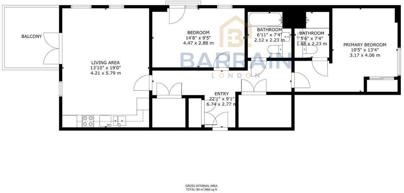 Barrain London is delighted to present this stunning two bedroom, two bathroom top floor flat with great balcony views over the roof tops toward central London. Featuring floor-to-ceiling windows that fill the rooms with natural light, a stylish fitted kitchen complete with integrated appliances,...