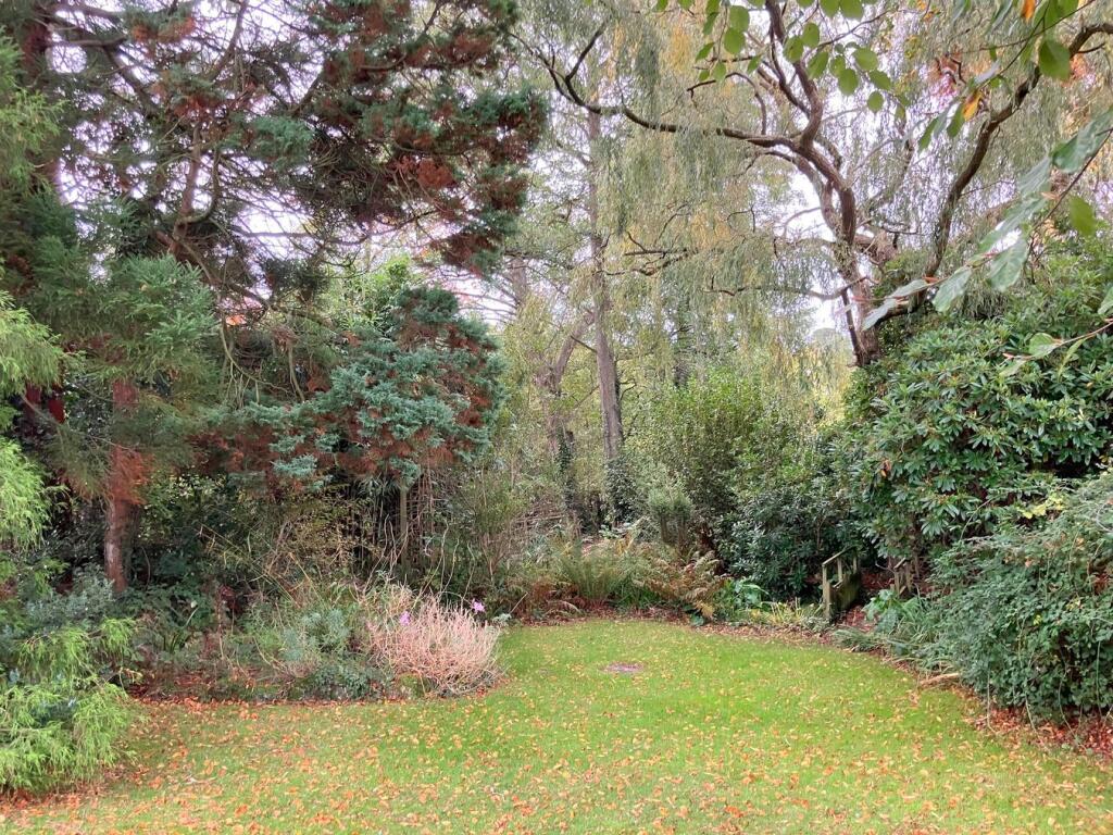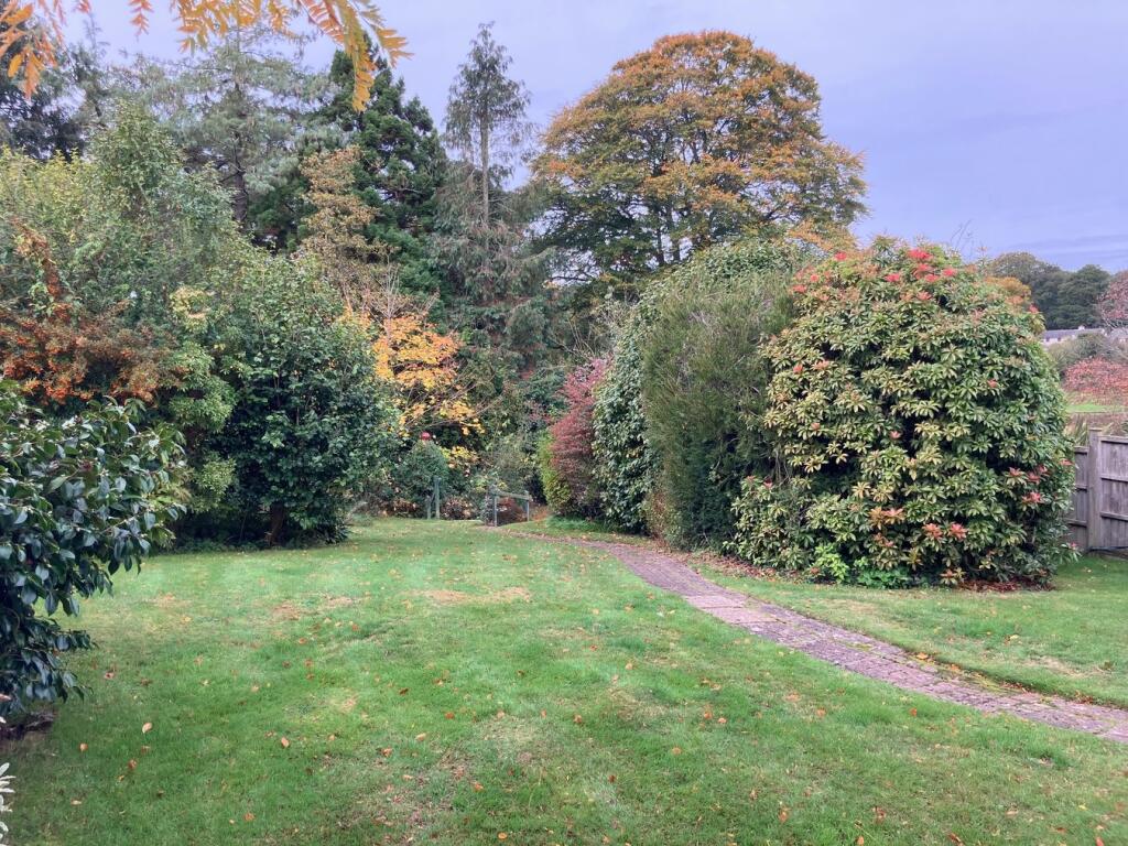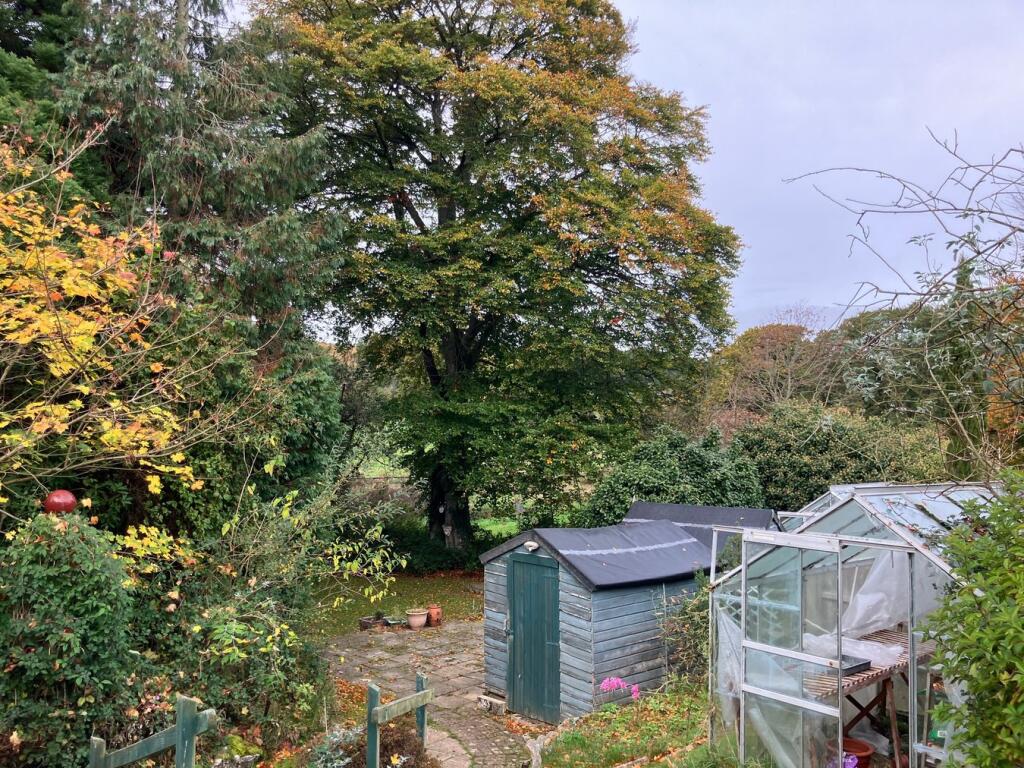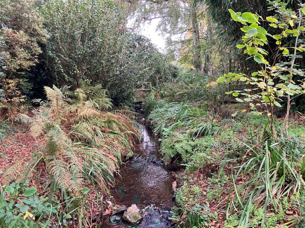 This is a three-bedroom semi-detached house on Knowle Road, Budleigh Salterton. The property features a large garden with mature trees, a stream, sheds, and greenhouses. Inside, there are two bathrooms, a traditional kitchen, and multiple reception rooms, including a conservatory. While the property is located in a desirable area and offers substantial outdoor space, it requires modernisation throughout. The interior design and fittings appear dated, and some rooms show signs of wear and tear. The property is listed for £650,000, which is slightly above the average price for the area, likely due to the size of the garden.