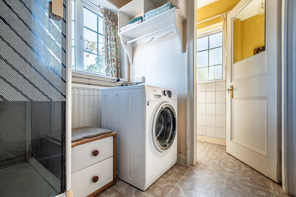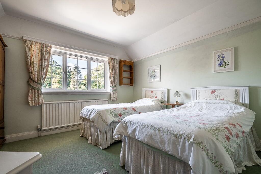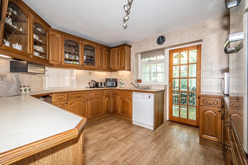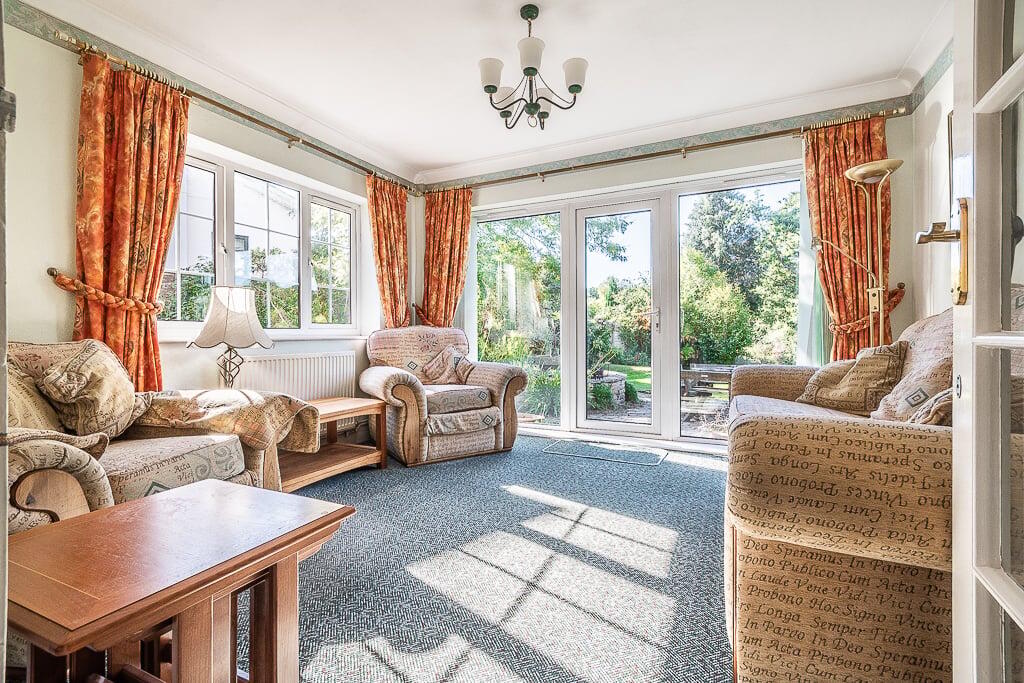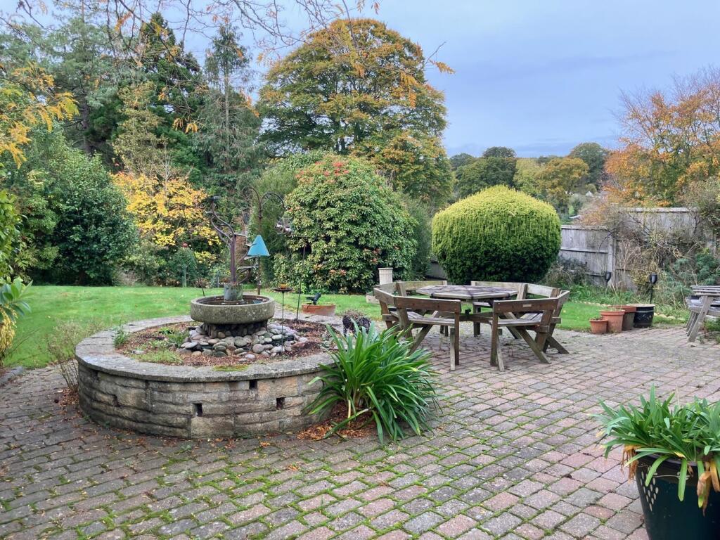 This is a three-bedroom semi-detached house on Knowle Road, Budleigh Salterton. The property features a large garden with mature trees, a stream, sheds, and greenhouses. Inside, there are two bathrooms, a traditional kitchen, and multiple reception rooms, including a conservatory. While the property is located in a desirable area and offers substantial outdoor space, it requires modernisation throughout. The interior design and fittings appear dated, and some rooms show signs of wear and tear. The property is listed for £650,000, which is slightly above the average price for the area, likely due to the size of the garden.