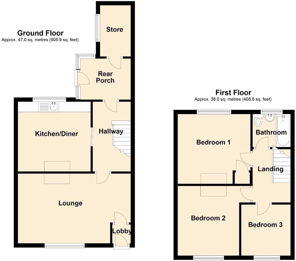 This three-bedroom terraced house in Pentre Gwyn, Wrexham is situated in a residential area with nearby schools and transportation links. The property appears to be in good condition, with recent renovations or updates evident in the interior photos. The kitchen and bathroom show modern fixtures and finishes. The presence of a garden adds to its appeal. While the exact square footage of nearby properties isn’t provided, the list price of £160,000 seems reasonable considering the property’s condition, location, and inclusion of a garden, compared to other similar properties in the area.
