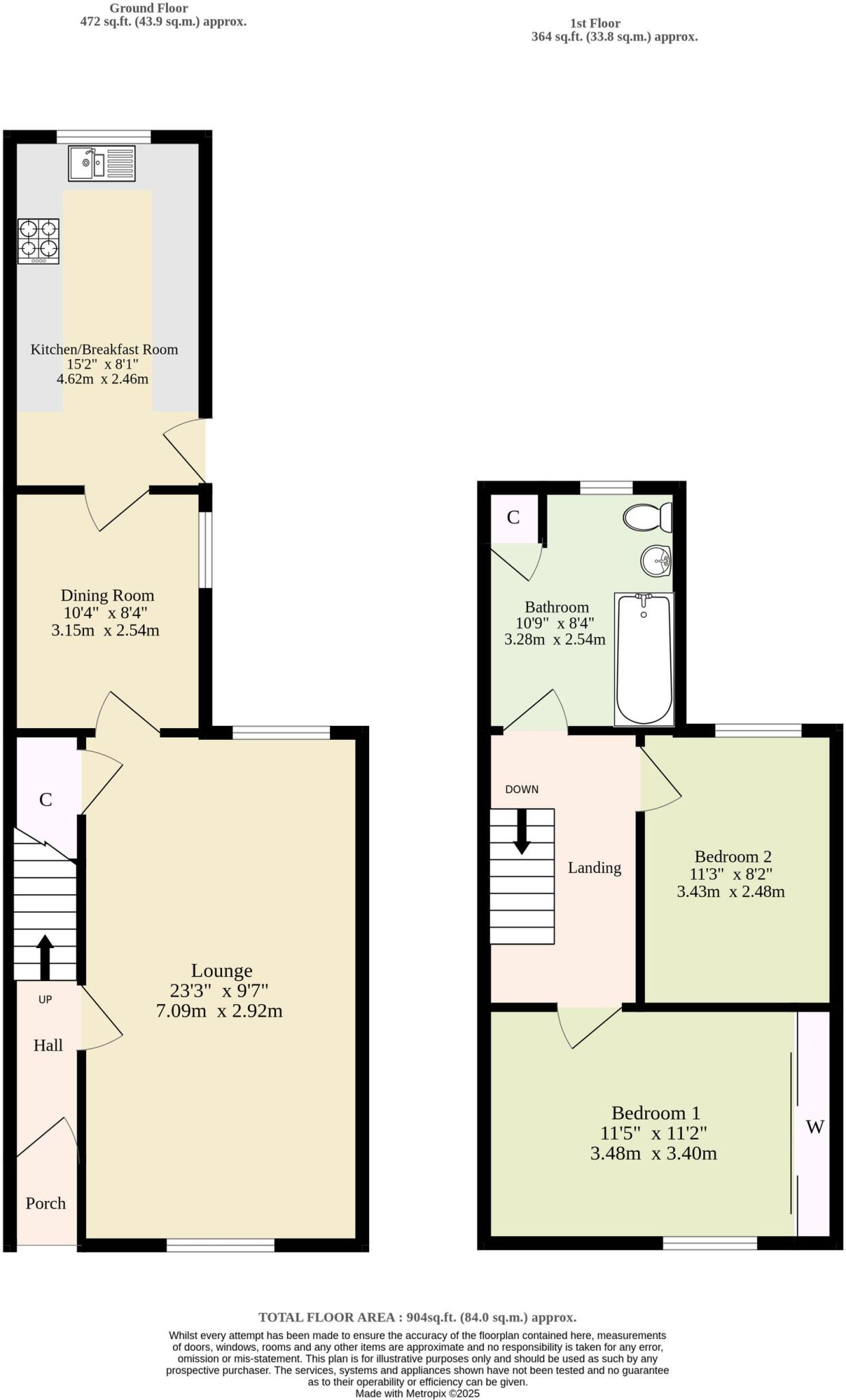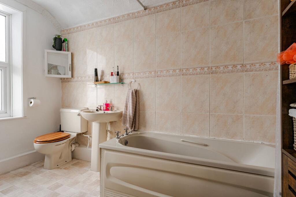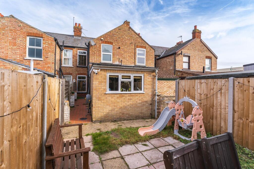 This is a traditional terraced property located on Victoria Road in Diss. It features two bedrooms and one bathroom, with a total square footage of 269.64 sqft. The property benefits from its proximity to local amenities, schools, and transportation links, including the Diss railway station. The interior appears to be in good condition, with a modern kitchen. The property also includes a garden with a shed. While the bathroom could use some updating, the overall condition and location make this a desirable property for potential buyers.