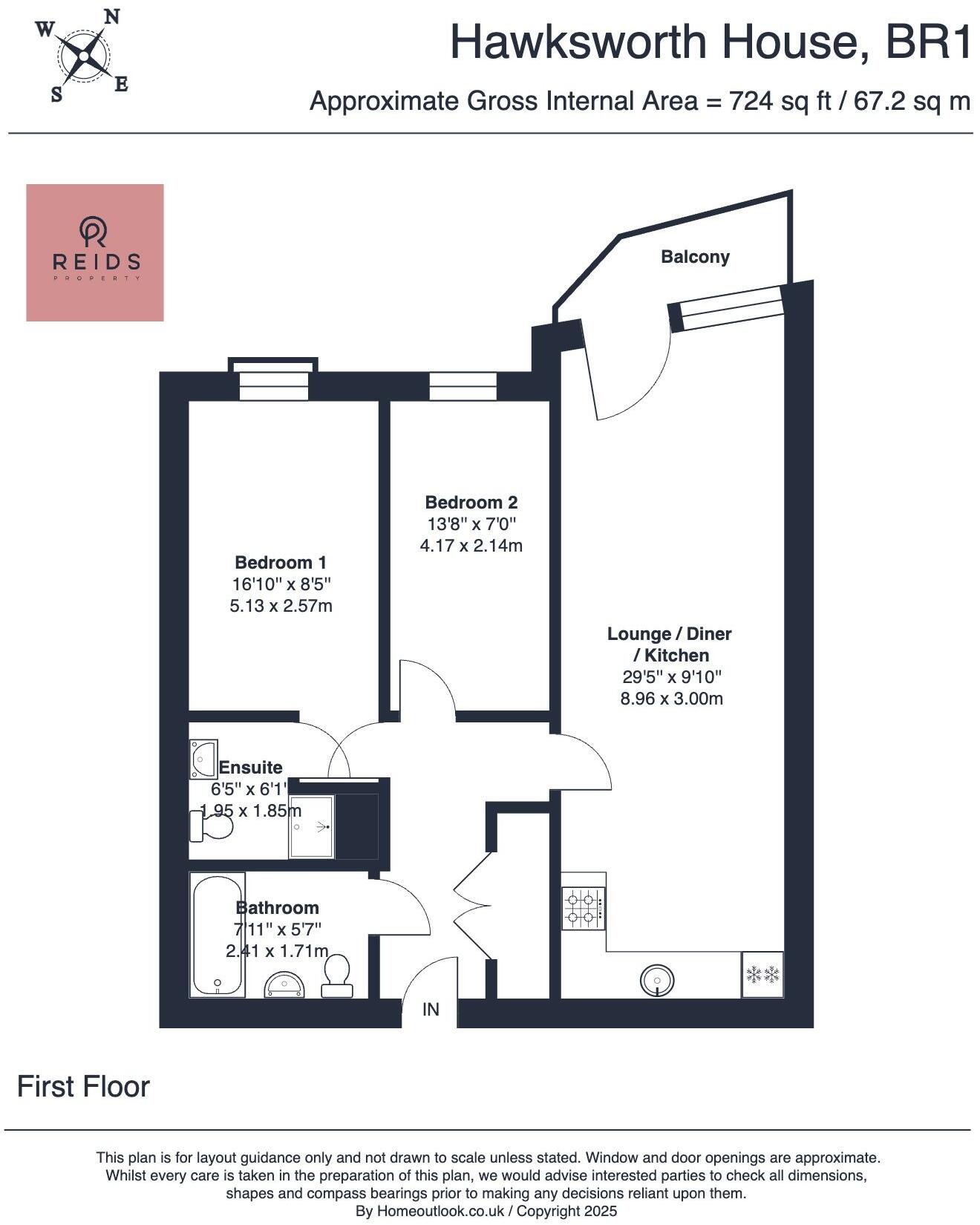 Hawksworth House is a two-bedroom, two-bathroom apartment located in Bromley, Greater London. The apartment is modern and well-maintained, as seen in the provided images. It features a light and airy interior with modern fixtures and fittings. The open-plan living area is spacious and benefits from access to a private balcony. The kitchen is modern and well-equipped. The location is convenient, with Bromley North and Bromley South train stations within easy reach, providing excellent transport links to London and beyond. Several schools are also located nearby. The property is listed at £350,000, which is below the average price for properties in the area (£517,861). However, it is important to note that the average size of properties in the area is larger (1,030 sqft) than this apartment (724 sqft). Considering the location, condition, and size, the price seems reasonable.