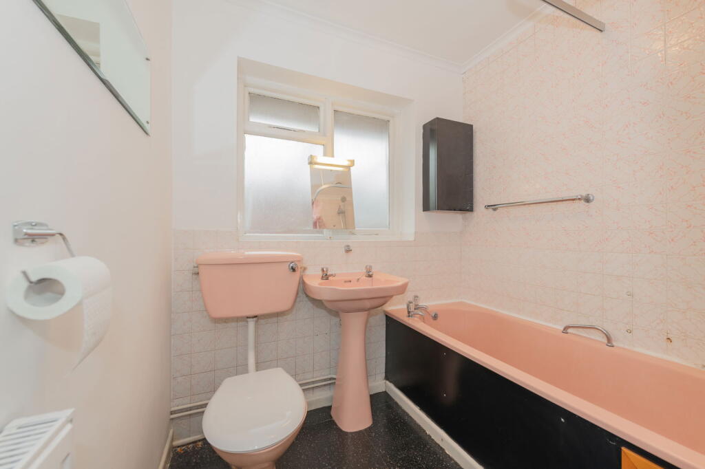 Based on the provided photographs, the property appears to be a three-bedroom bungalow in relatively good condition. While some aspects, such as the bathroom, might benefit from modernisation, the overall structure and interior seem well-maintained. The property also includes a garden and a garage, adding to its appeal.