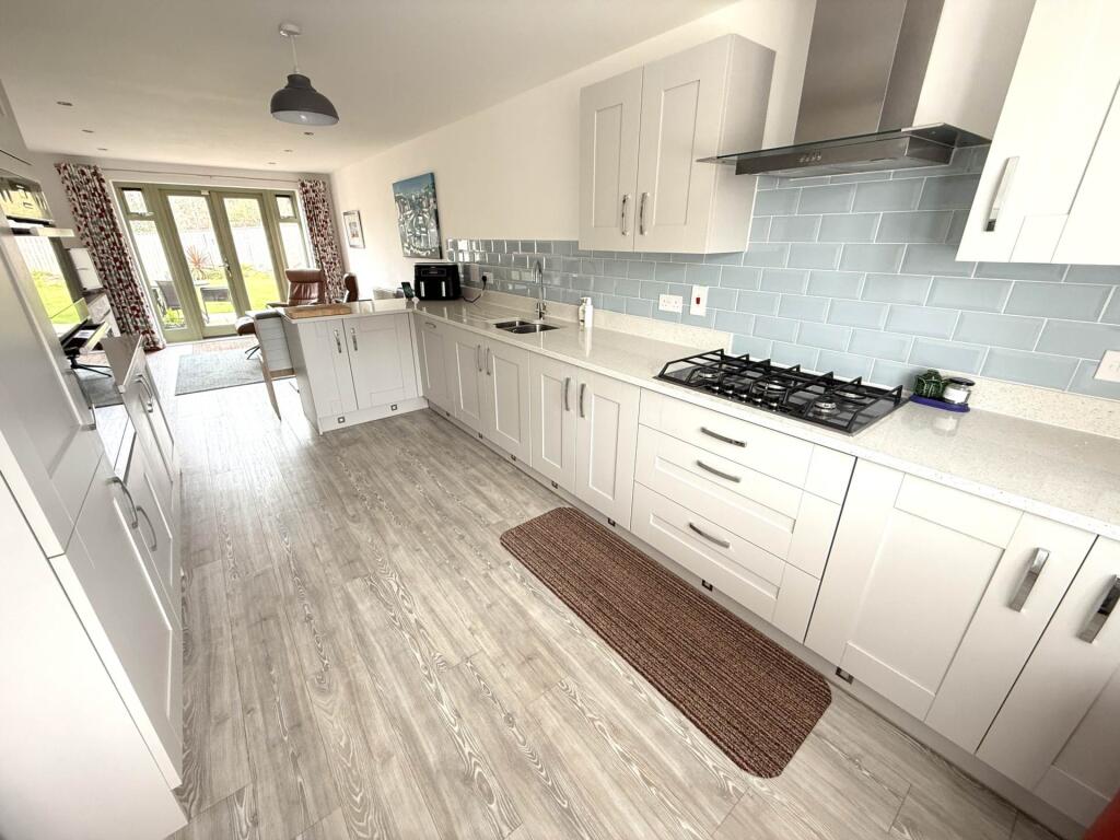 This property is a modern detached house located in Exmouth Littleham, East Devon. The house is in excellent condition and appears well-maintained, with a modern kitchen and bathrooms. The property benefits from a large garden, including a patio area, a conservatory, and a shed. There is also off-street parking in the form of a double garage. The location is good, with nearby schools and transportation links. However, the list price is significantly higher than the average price for the area, which could be a concern for some buyers. The average price per sqft in the area is £355, while this property is listed at approximately £361 per sqft. This is higher than the average but may be justified given the size, condition, and features of the property.