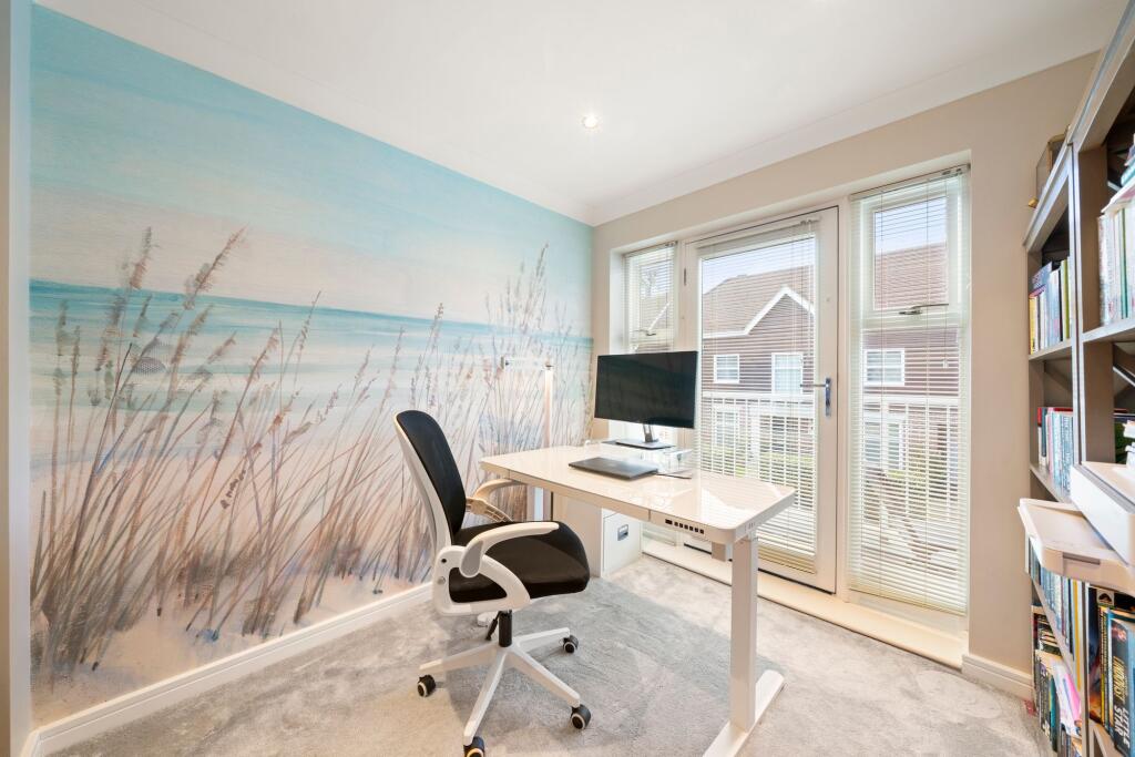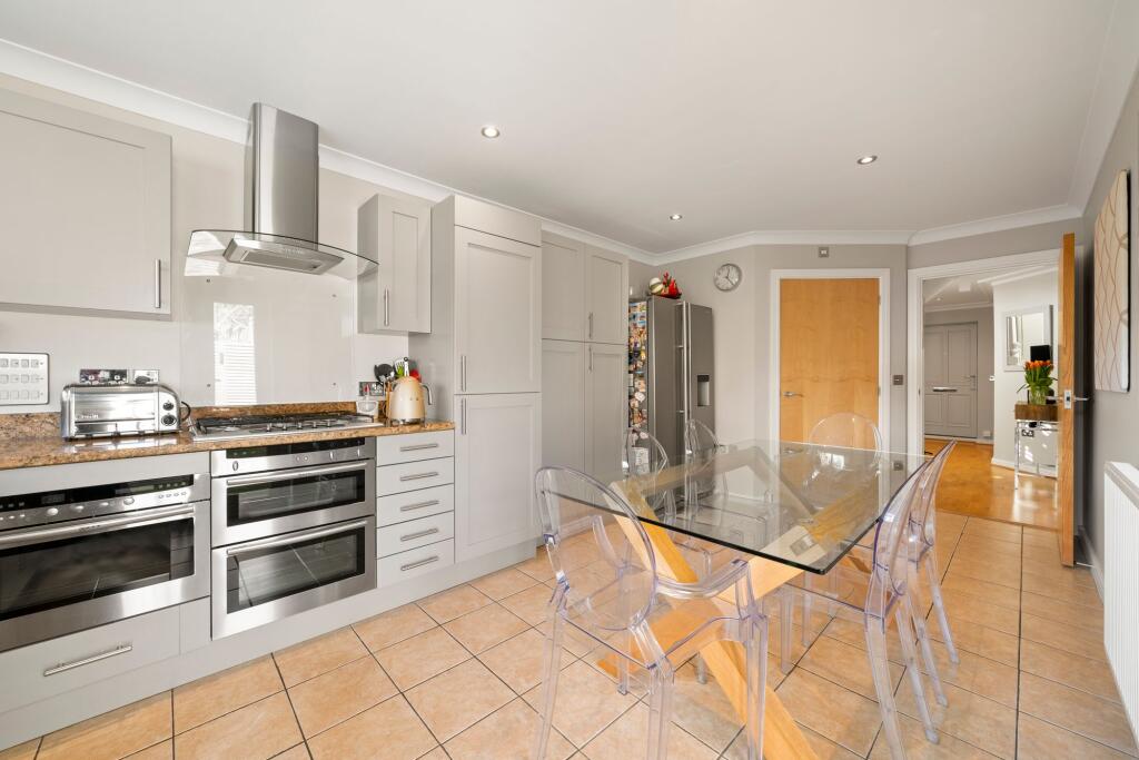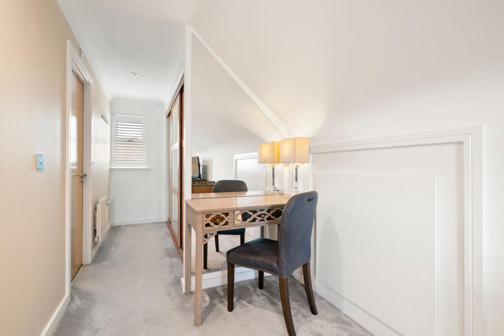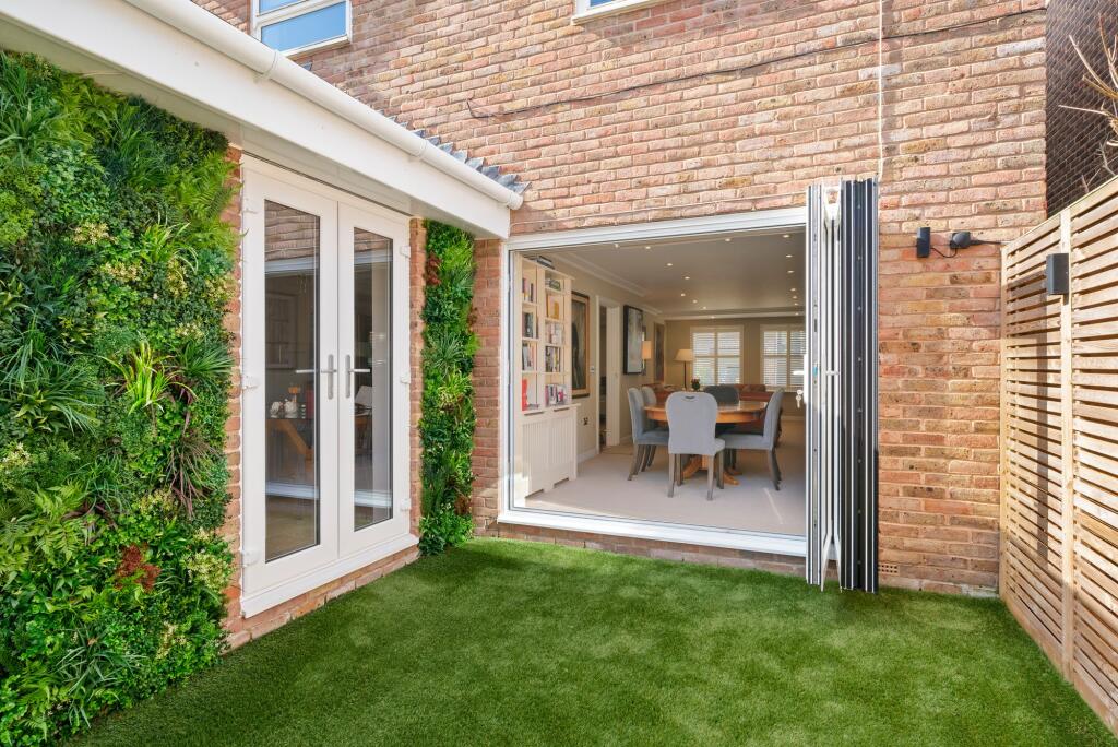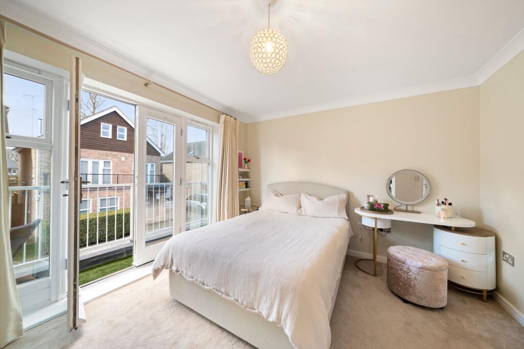 Attractive five bed family home in a private gated development, moments from Cobham Station & High Street. Expertly crafted interiors, luxury living, landscaped garden, gym, and ample parking