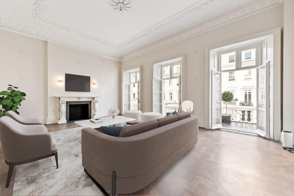 A luxurious three bedroom apartment on the prestigious Eaton Place in the heart of the Belgravia, SW1. The apartment offers classic first-floor entertaining rooms and a beautifully finished interior, this elegant residence extends to approximately 2,656 sq ft and showcases timeless style and sop...