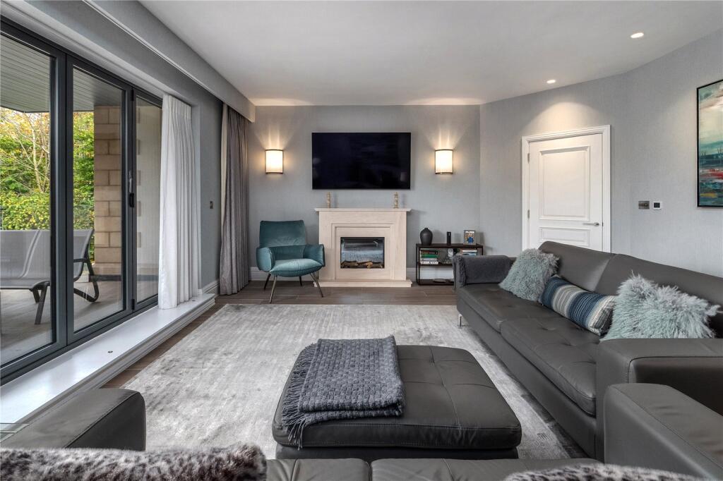 An elegant two-bedroom apartment with terrace and views, moments from Alderley Edge. - Two-bedroom duplex - West-facing balcony - Terrace and lawn - Light-filled interiors - Underfloor heating - Generous storage - Integral garage - Elevated views