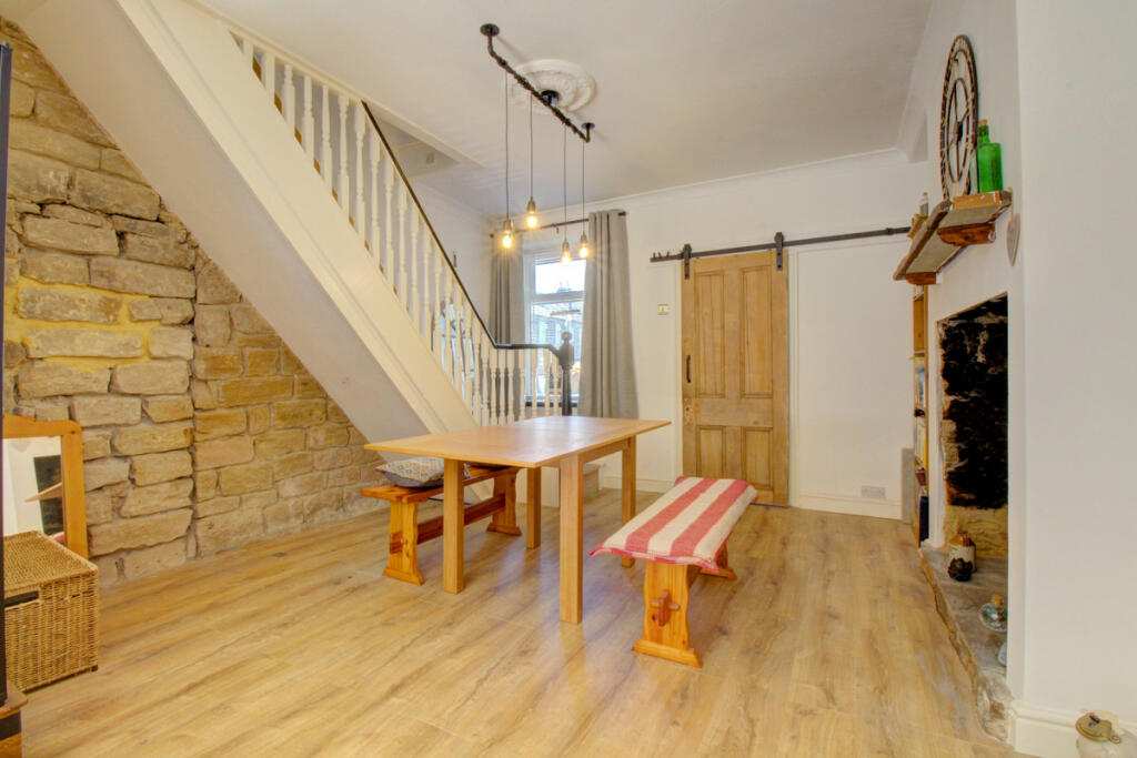 A characterful stone terrace home offering two spacious bedrooms, two reception rooms with Bi-Folding doors leading to the lovely rear garden