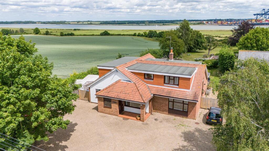 A substantial detached house having been extended over the years in an elevated position with stunning views out and up the River Orwell to Levington marina, set in its own grounds extending to 1.42 acres.