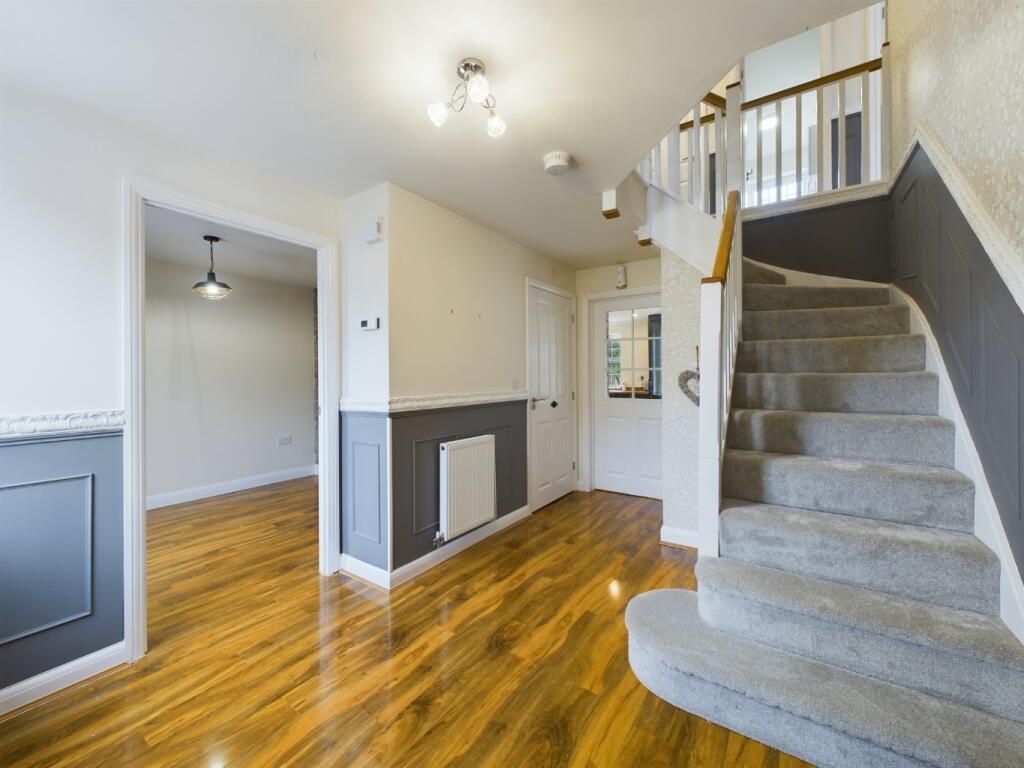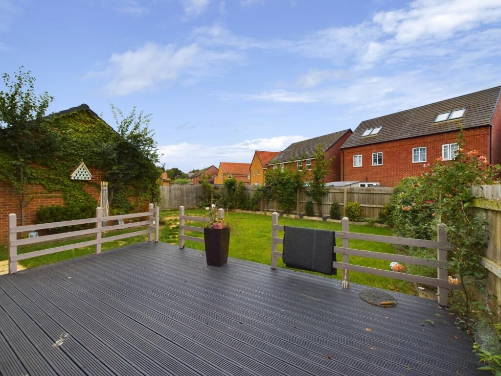 Situated within the popular village of Moulton is this well presented and large, five bedroom detached family home built by David Wilson. The property boasts, three reception rooms, kitchen diner, principal bedroom suite with dressing area and en suite, four further double bedrooms, off road