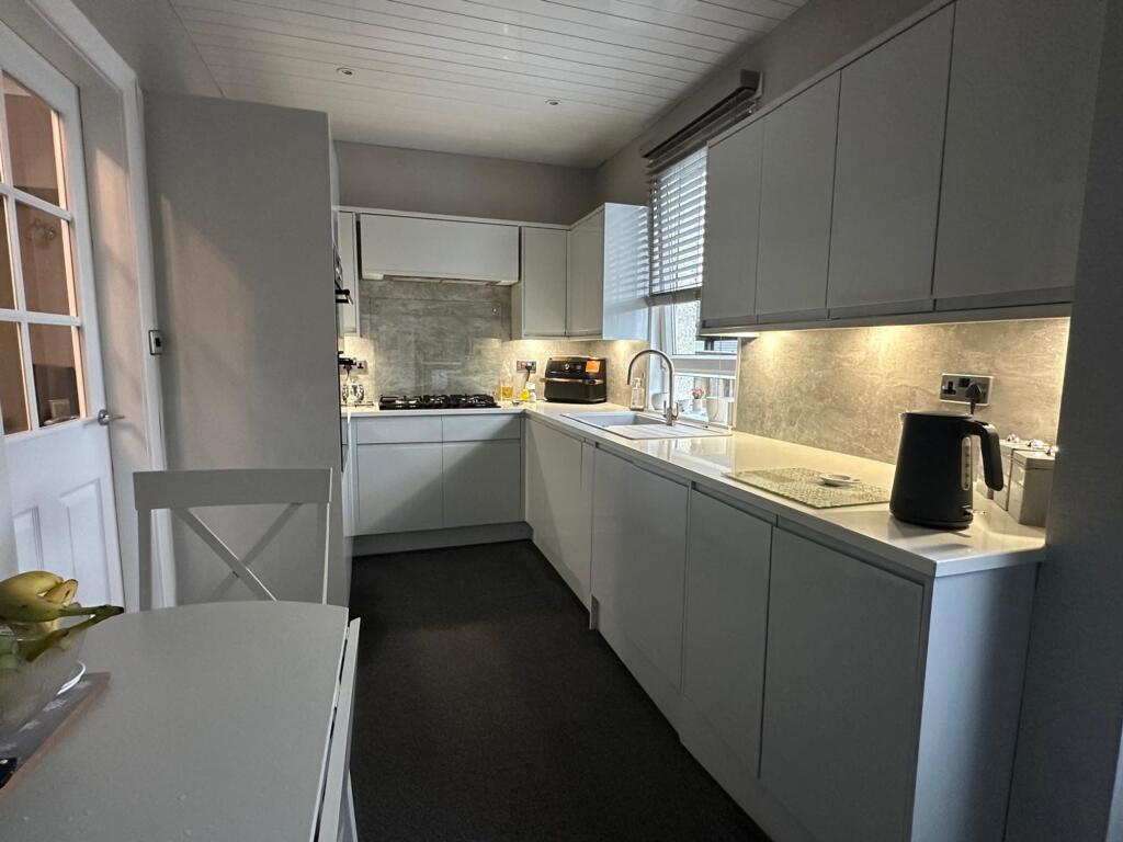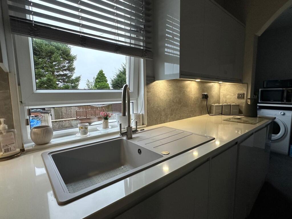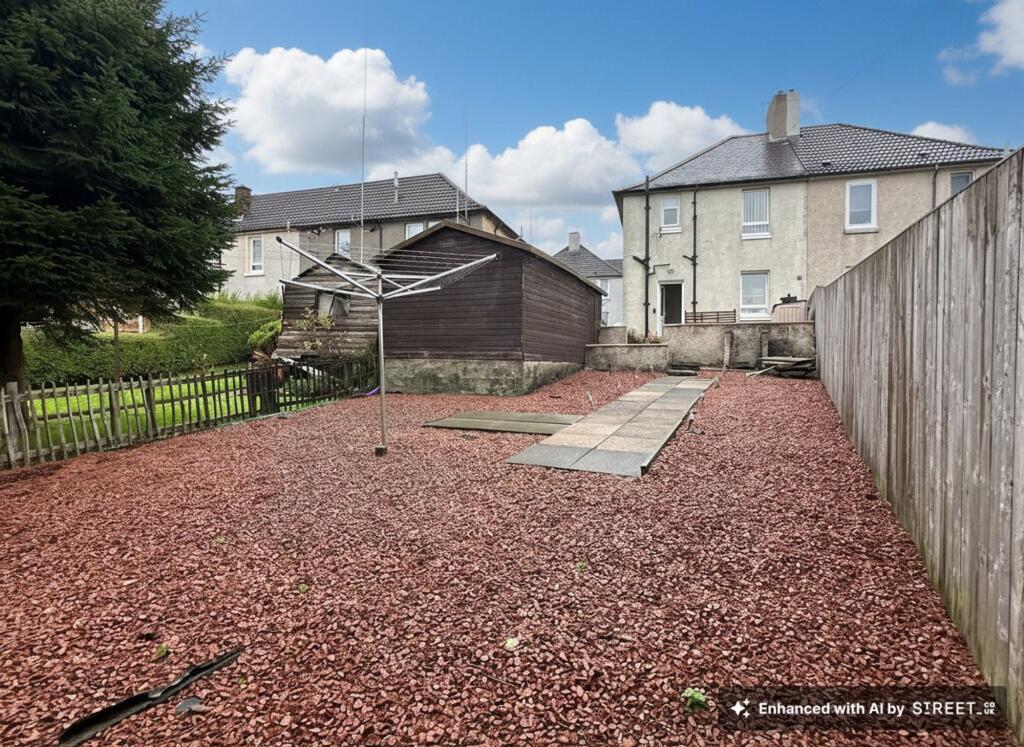 This is a 2-bedroom semi-detached property in Airdrie, presented by Housespotters Estate Agents. The house features a modern kitchen and bathroom, and a well-maintained interior. It also has a good-sized garden with a shed. Drumgelloch train station is within walking distance, providing good transport links. The property is listed at £140,000, which appears to be reasonable given the location, condition, and size.