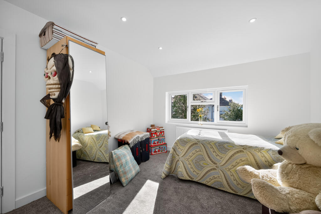 This end-of-terrace property on Meadow Road, Romford, offers four bedrooms and two bathrooms, spanning 1,317.50 sqft. The house has been modernised with a new kitchen and bathrooms. It also benefits from a generously sized garden. While the asking price of £550,000 is above the average for the area, the property’s size, condition, and features may justify the premium. The proximity to schools and transport links adds to its appeal.
