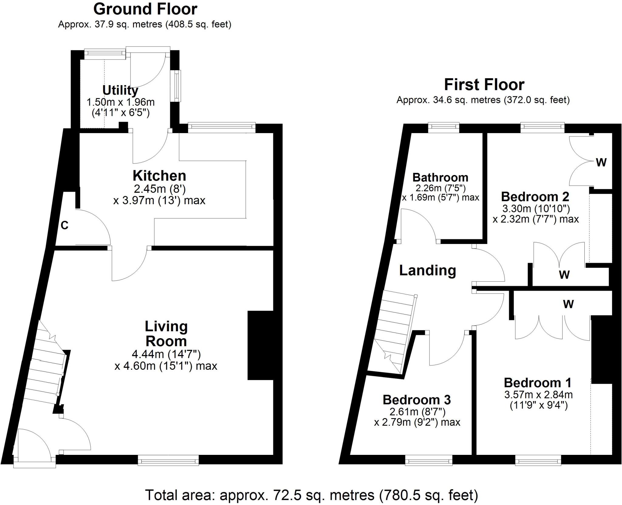 This terraced property is located in Crawcrook, Tyne and Wear. It features three bedrooms and one bathroom, with a total square footage of 667.23.