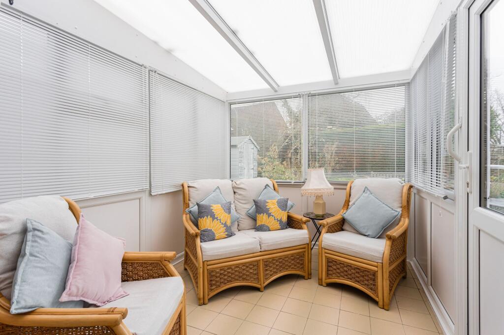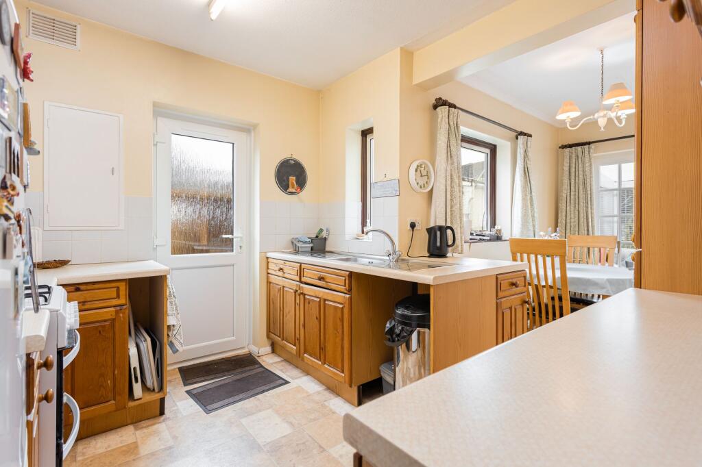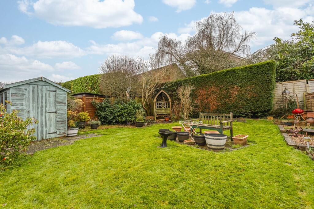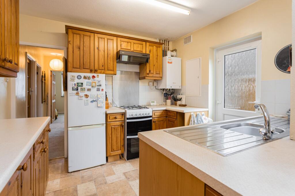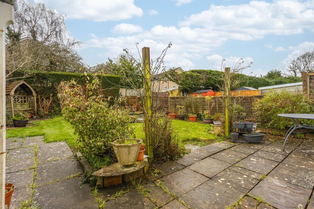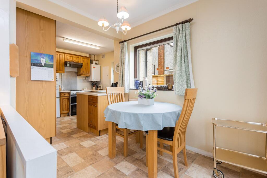 The interior is presented in a clean and tidy condition, but appears dated and may benefit from some modernisation to enhance its overall aesthetic appeal and market value. The kitchen and bathroom appear functional but could be updated. There is a sizable garden with mature hedging and a patio area, perfect for entertaining and relaxation.