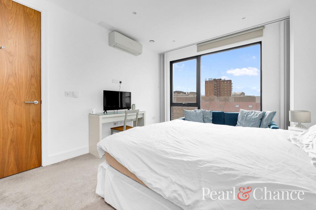 This property is a modern two bedroom, two bathroom apartment located in Childs Hill, Barnet. The apartment is in excellent condition and benefits from modern fixtures and fittings throughout. The location is convenient, with good transport links and local amenities nearby. There are several good schools within a reasonable distance. The price is slightly above average for the area, but considering the condition, modern features, and location, it is likely to be considered good value for money. The property also includes access to a communal garden and parking.