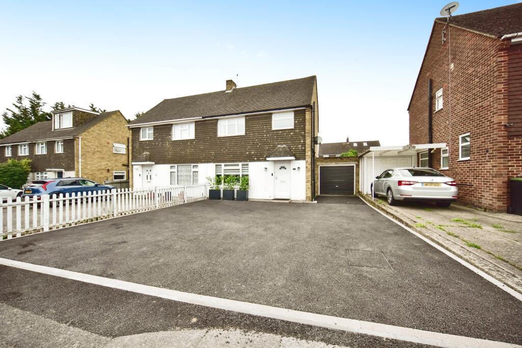 This is a three-bedroom semi-detached house in Aylesford, Kent. The property is in good condition and benefits from a garden, off-street parking, and a garage. The property is located close to local schools and transportation links. The listing price is £435,000, which is slightly above the average for similar properties in the area, but seems reasonable given the condition of the property.