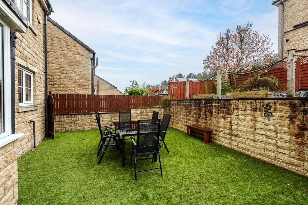 The property is located in Lindley, Huddersfield, a desirable area with good schools and transport links. It is in excellent condition, with a modern and well-maintained interior. The garden is relatively small but well-kept. The list price seems reasonable considering the size, condition, and location.