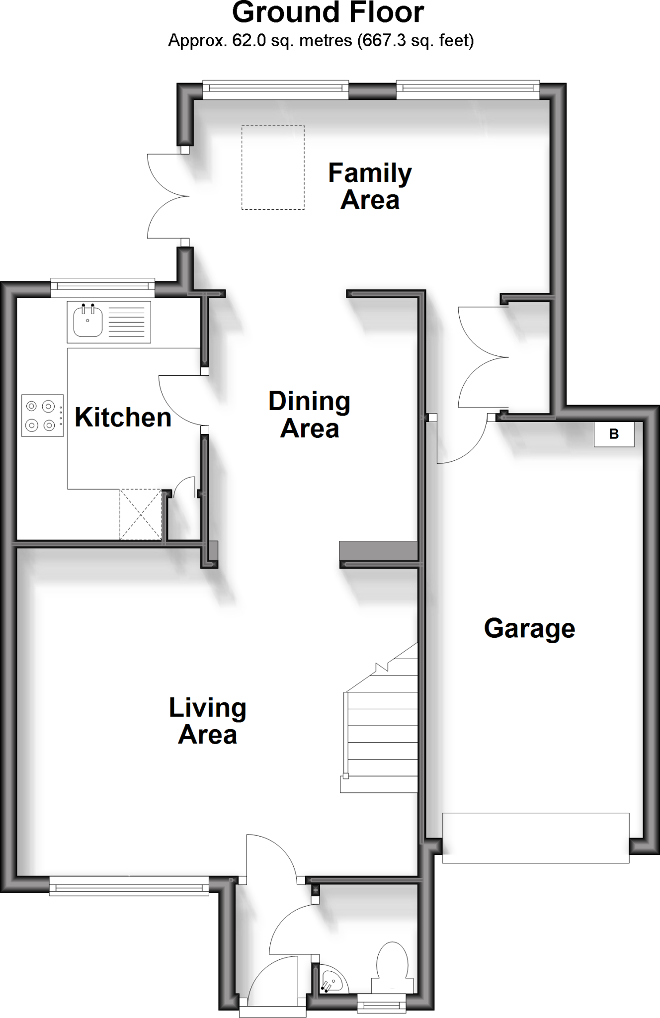 Extended detached family home in a small cul-de-sac, with lovely spacious family/dining'/living area. Close to village amenities, schools, shops and bus route.