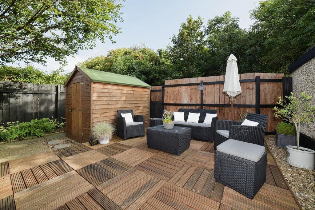 The exterior of the property is similarly well-kept, with a neat front garden and a significant, landscaped rear garden, providing ample outdoor space for relaxation or children’s play. The inclusion of a patio area and garden shed adds further value.