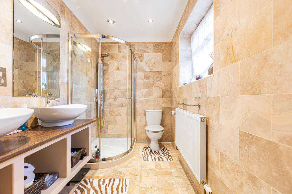 This semi-detached property on Halifax Road in Bicester offers three bedrooms and three bathrooms. The house is located in a convenient area, close to schools and transportation options, including Bicester North and Bicester Village train stations. The interior appears to be well-maintained, with modern bathrooms and a functional kitchen. However, some decorative choices, such as wallpaper, might not suit all tastes. The garden is mostly paved and includes a shed, providing a usable outdoor space. The asking price of £475,000 is above the local average but aligns with the higher end of nearby listings for similar properties. Overall, this property presents a solid option for families or commuters seeking a well-located home in Bicester.