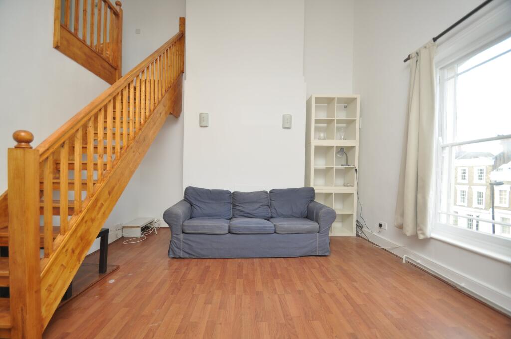 Stunning one-bedroom period conversion on Leighton Road, Kentish Town. Features mezzanine reception, study, double-height ceilings, wood flooring, bathroom, furnished, and washing machine. Ideal location near Camden Town & Kentish Town stations.