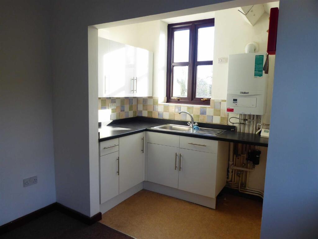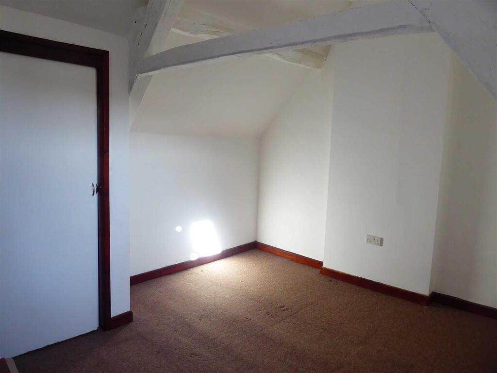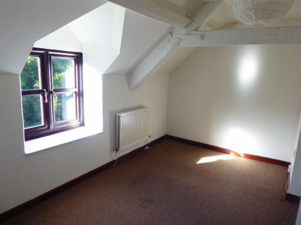 Two bed top floor apartment in town centre and with character features. Accommodation comprising of entrance hall, kitchen/lounge with oven and plumbing for washing machine, two double bedrooms and bathroom with bath and WC. Gas central heating, double glazing, parking space. Energy Rating C. Ava...