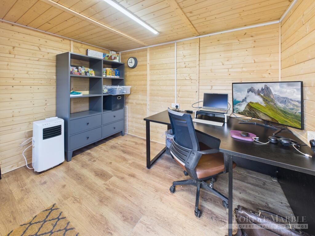 This is a four-bedroom end-of-terrace property located in the village of Trudoxhill, Somerset. The house offers 1,548 sqft of living space and includes a garden with a patio and a separate office/shed. The interior appears to be in good condition, with modern kitchen and bathrooms. While the location offers a rural setting, it is somewhat remote and requires a drive to reach essential amenities and transport links. The asking price of £390,000 seems reasonable compared to the average property price in the area.