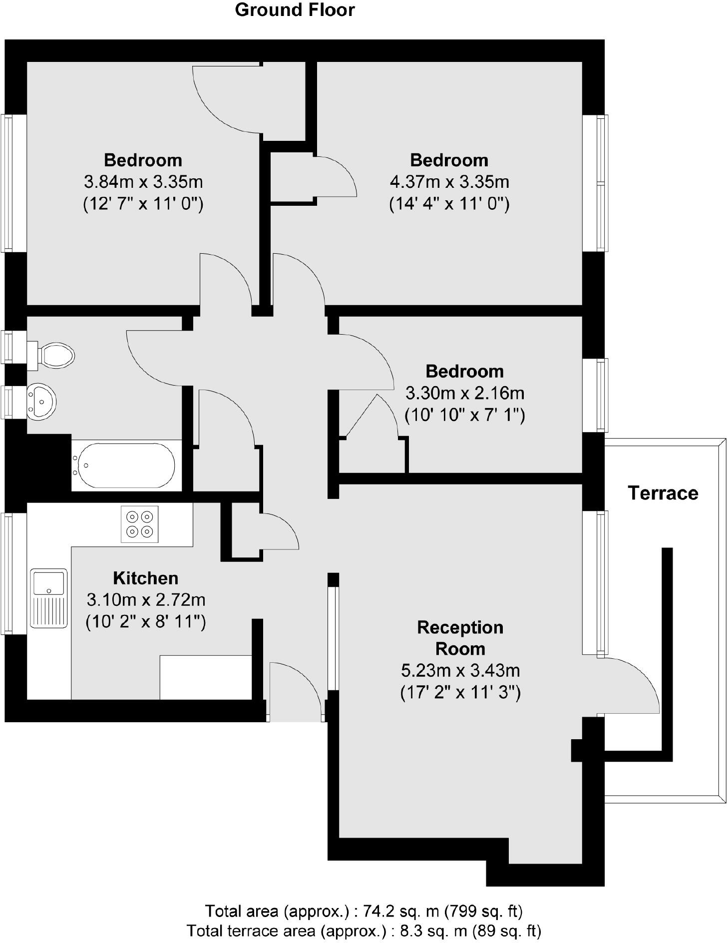 Well presented three double bedroom ground floor purpose built apartment. The property offers spacious living accommodation which comprises entrance hall, great size kitchen with breakfast bar and large living room with doors opening up to a communal garden.