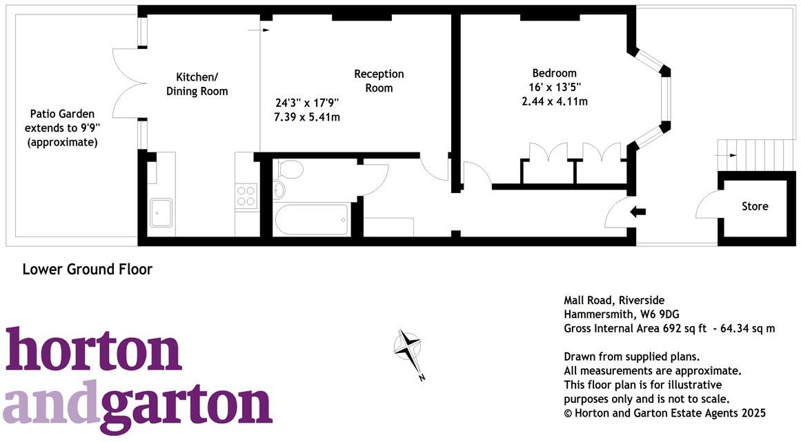 This Victorian conversion lower ground floor flat, circa 692 Sq’ – 64.34 SqM, benefits from a East facing patio garden and is ideally positioned close to all transport and recreational amenities of The Riverside and Hammersmith Broadway, King Street and Ravenscourt Park.