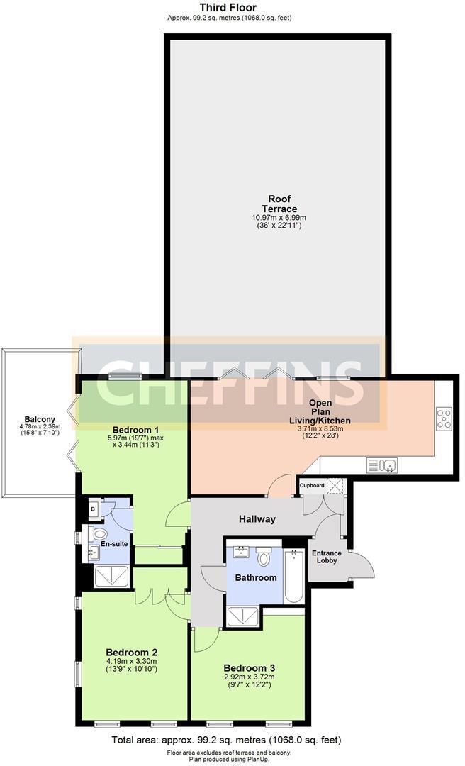A stunning 3 bedroom penthouse apartment with large roof terrace and views over adjacent country park. The accommodation comprises entrance hall, open plan living room kitchen with large roof terrace off, principle bedroom with en-suite shower room and balcony, 2 further double bedrooms and bathr...