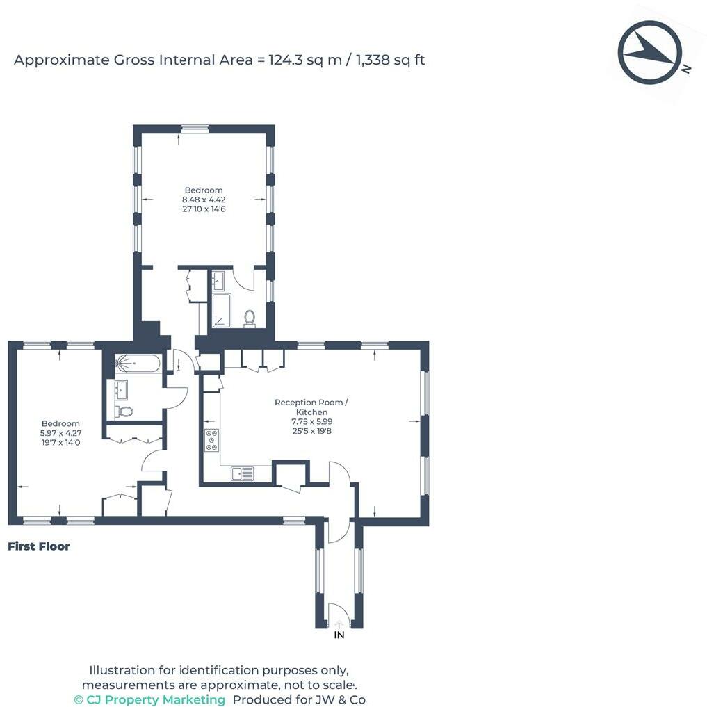 This property is a two bedroom, two bathroom apartment located in Bushey, Hertfordshire. Based on the provided photos, the property appears to be in excellent condition, with modern fixtures and fittings throughout. The apartment benefits from a spacious open-plan living area and kitchen, as well as two well-proportioned bedrooms. While there is no information provided on plot size, the location is convenient with nearby schools and transportation links. The list price of £695,000 seems reasonable considering the condition and location, although a precise price per square foot analysis cannot be performed due to missing plot size data for comparative analysis.