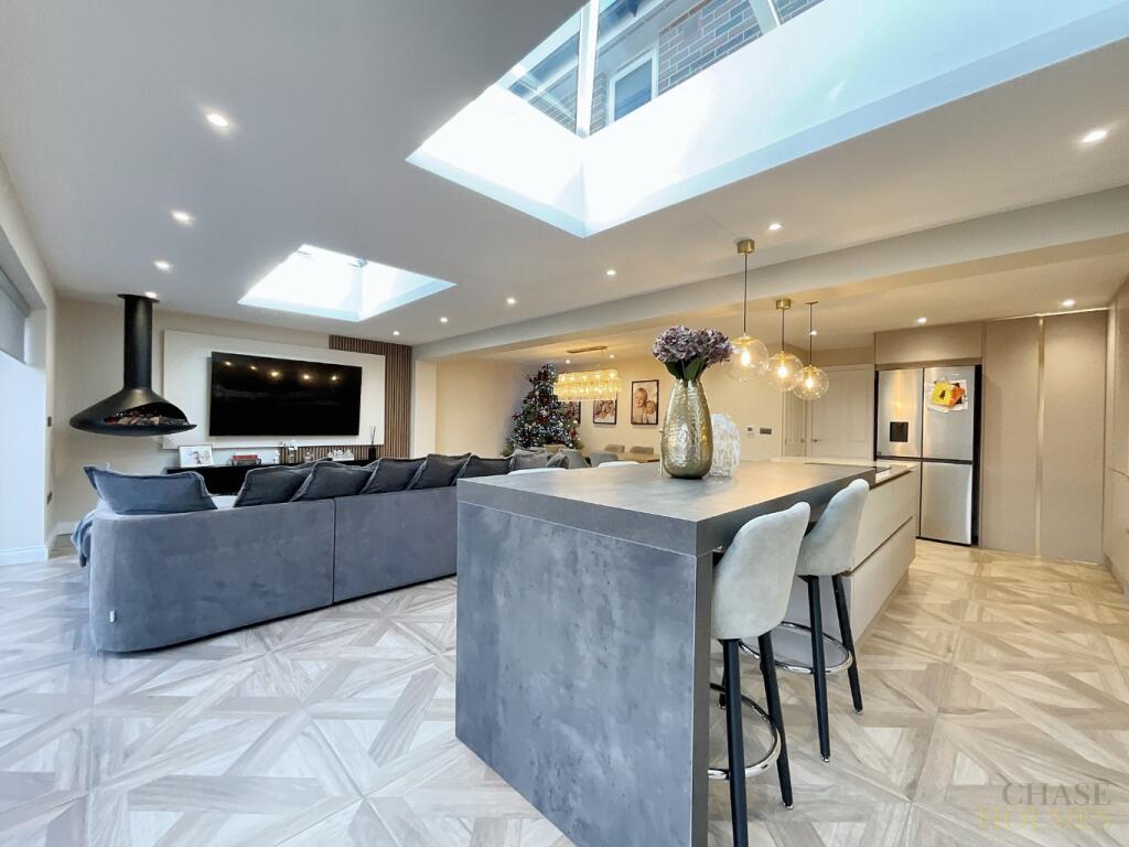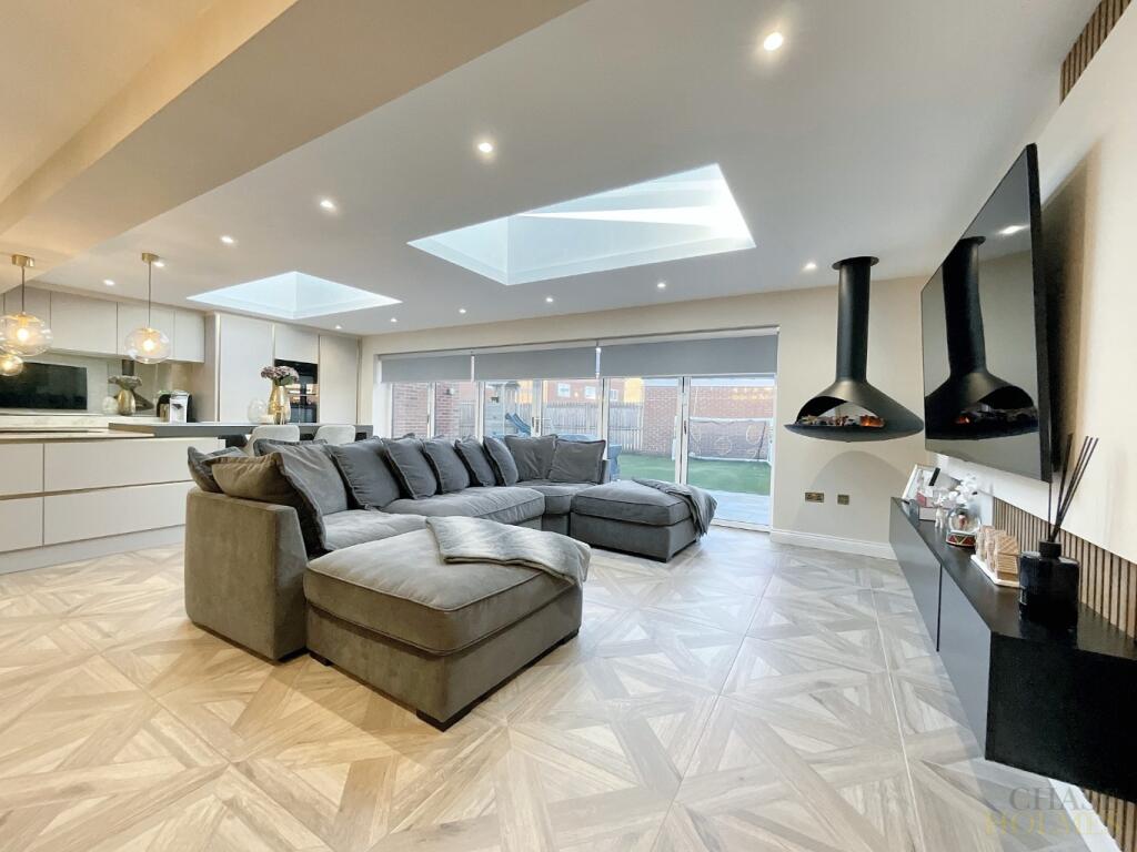 Extended five-bedroom detached family home featuring a stunning kitchen, spacious reception rooms, a master bedroom with en suite, a versatile ground-floor fifth bedroom, and a large, low-maintenance rear garden.
