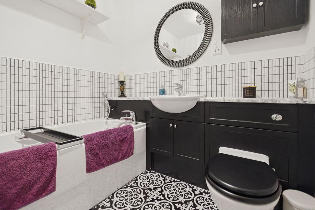 This is a well-presented two-bedroom flat in Cardross. The interior is modern and appears to be in good condition. The location offers a balance of accessibility and rural charm, with the nearby train station providing convenient transport links. The shared garden space is a bonus. Overall, this property would likely appeal to commuters, small families, or those seeking a quieter lifestyle within easy reach of Glasgow.