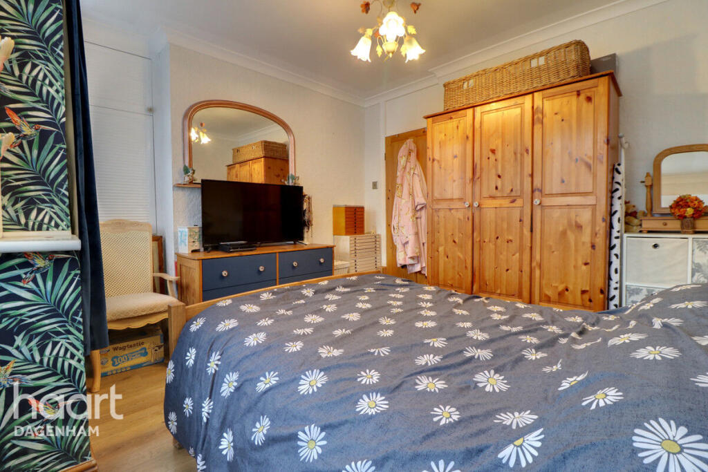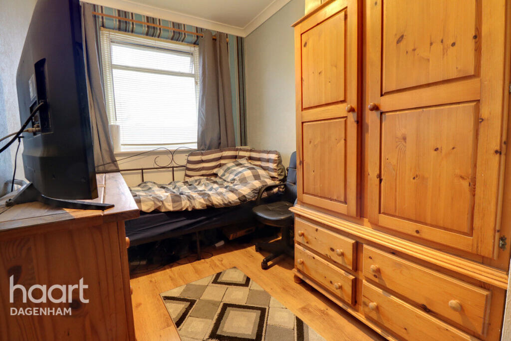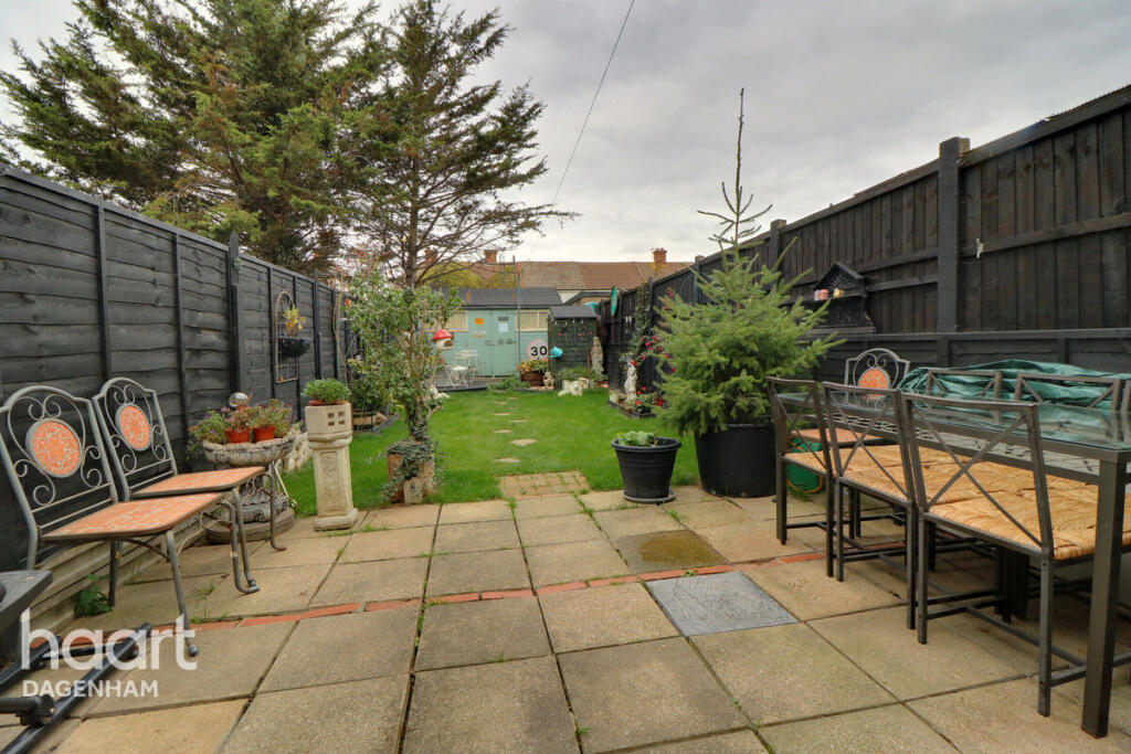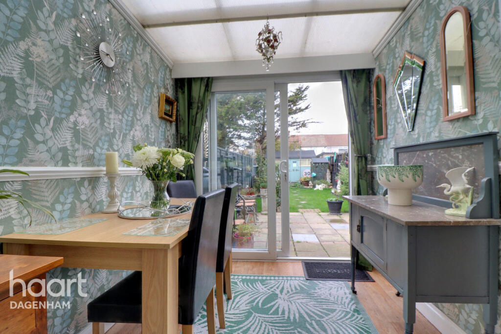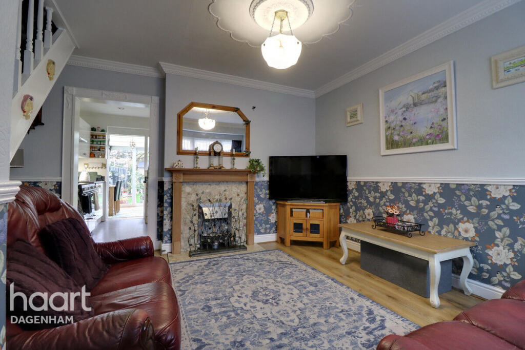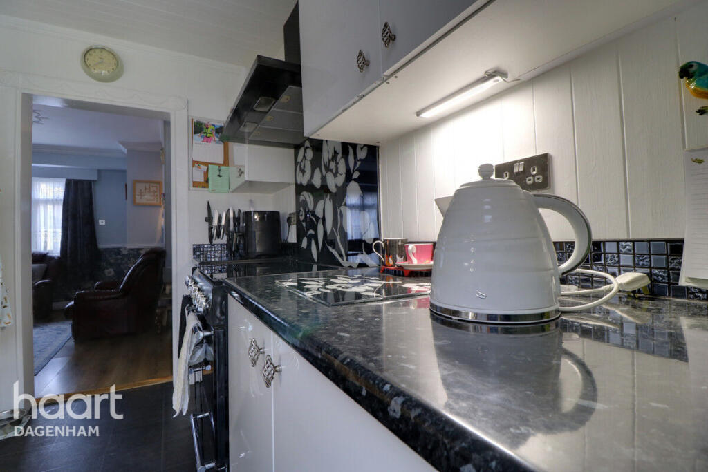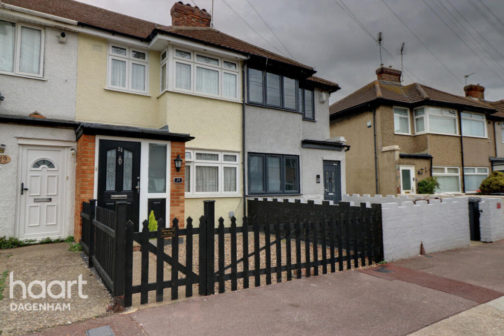 This is a three-bedroom terraced house located in Dagenham, East London. The property is in reasonable condition but could benefit from some modernisation. It features a decent-sized garden, a modern kitchen, and good transport links. The asking price of £350,000 is slightly above the average for the area, but this may be justified by the garden and end-of-terrace position. Nearby schools include Dagenham Park Cofe School and Marsh Green Primary School. The closest train station is Dagenham Dock, which is 1.41 KM away. Overall, this property would be suitable for a family or first-time buyer looking for an affordable home in London.